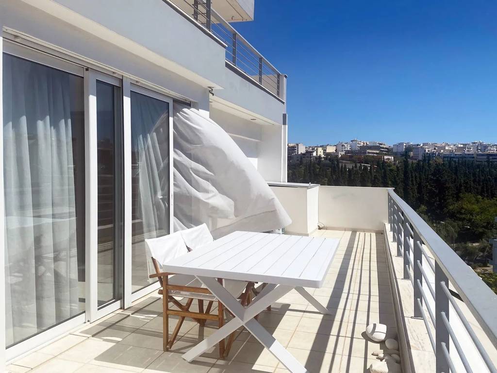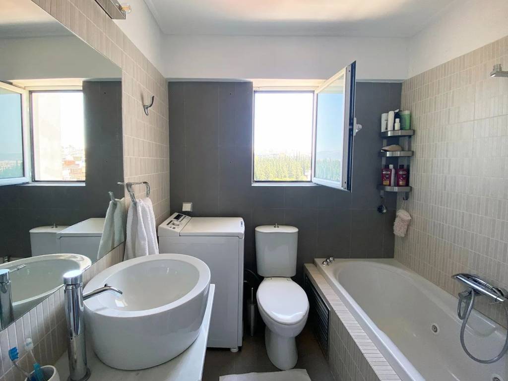 For rent in Pagrati 6th floor maisonette, 74 sq m, fully furnished It has 1 bedroom, open plan living room-kitchen and 2 bathrooms It has all the amenities (electric stove/oven, refrigerator, small kitchen appliances, washing machine, air conditioners) The furniture is new, in a modern style It has a solar water heater, autonomous oil heating and air conditioners in all areas The view is open, overlooking the Acropolis It is located in a well-kept apartment building. with easy access for people with mobility problems Very close to Hymettus, with direct access to the main road Information: Goldedn Houses Real Estate