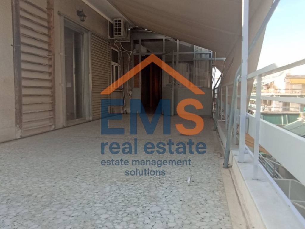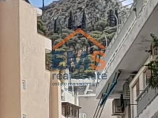 In Neapoli Exarchia, on Agathiou Street, a top-floor apartment (penthouse) is offered for sale on the 4th and last floor, with a total area of 110 sq.m., located in a corner, front-facing building constructed in 1974. The property is through-apartment, bright, with open views and unobstructed sightlines towards Lycabettus Hill, suitable for both residential and professional use. It features a 70 sq.m. wrap-around terrace with mosaic flooring, plus an additional 30 sq.m. converted into two enclosed glass rooms on the terrace. The interior layout includes two bedrooms with oak parquet flooring, each with its own bathroom, an open-plan kitchen, a reception/living area with wooden “rabote” ceiling, built-in wardrobes and a 4 sq.m. storage room. A brand-new solar water heater is also installed. The apartment is equipped with three-phase electricity, electric heating, double-glazed windows, a security door, elevator access and marble-finished corridors. It is ideally located parallel to Alexandras Avenue, close to parks, local market, public transport and the new Alexandras Metro station (under construction). The property is delivered unfurnished, immediately available and in need of renovation.