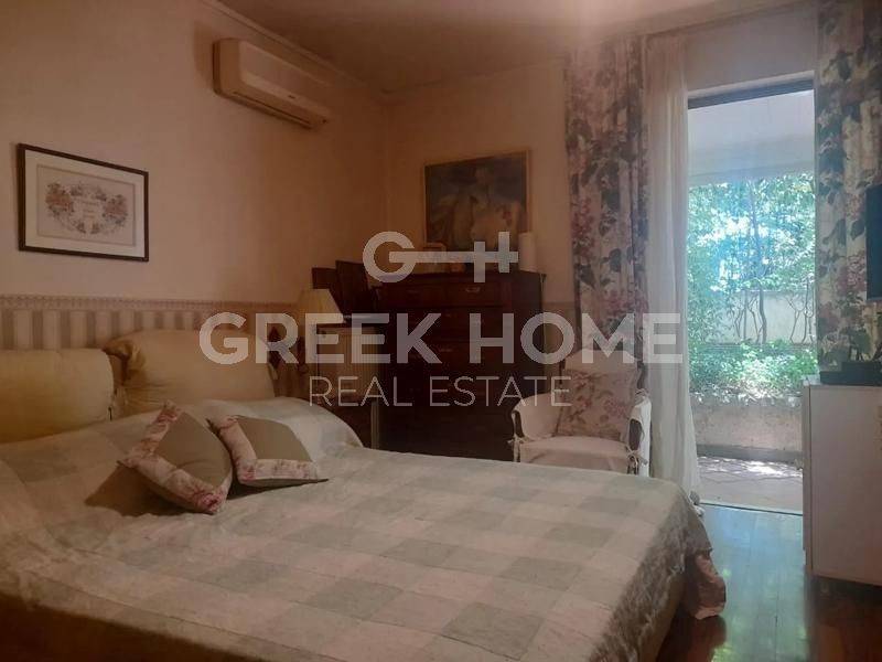 Kifissia, Profitis Ilias - Apartment 146sqm bedrooms 3, 1st - raised ground floor, year built 1978, energy class G, living room, kitchen, 2 bathrooms, wc, heating type: central (natural gas), parking covered, quiet, corner, frontage, storage space 15sqm, fireplace, balconies, large balconies, aluminum frames, double glazed windows, wood floors, separate kitchen, video doorbell, pets allowed, east-southern orientation, close to market (up to 200m), close to bus stop (up to 100m), close to metro/train (up to 500m).