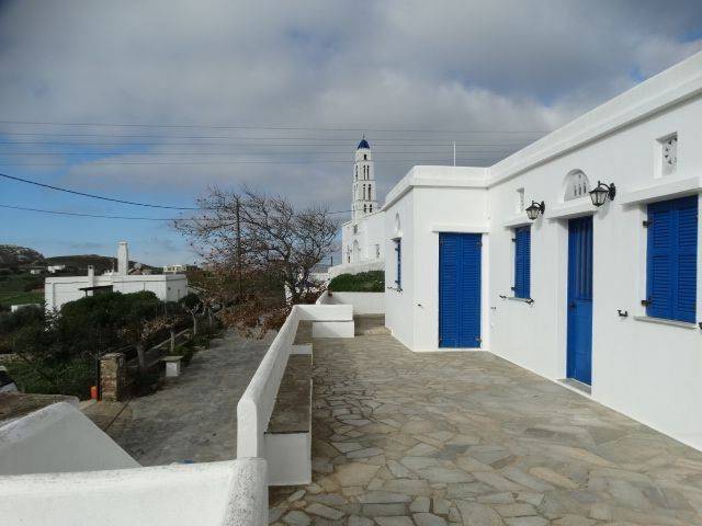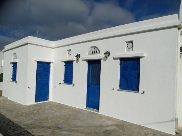 FALATADOS VILLAGE SETTLEMENT, ON A PLOT OF SURFACE AREA 987sqm, DETACHED HOUSE OF 67sqm WITH INDOOR PARKING - STORAGE 45sqm. & ADDITIONAL BUILDING ABILITY OF 300sqm The Detached House is located in a privileged location at the edge of the FALATADOS Village Settlement where access is very easy by car. The property is situated on an Amphitheatric Plot of 987sqm., having a wide and uninterrupted views of Exombourgo and the natural beauty of Tinos. In detail, the property is elevated from the street level, has a Surface Area of 67sqm., and enjoys a large yard at the entrance and all around the house. It is consisting of the Living Room with a Kitchen, 2 spacious Bedrooms and a full Bathroom. The House is surrounded by windows and balcony doors, has a meridian orientation, is very sunny and bright. On the Ground Floor is the Closed Garage - Storage of a total area of 45sqm. In this spacious space that can accommodate 2 cars, there is the heating burner and all the infrastructure of the House. The House has Heating installation in all areas. Finally and very importantly, it has a remaining building area of 300sqm at any point of its plot.