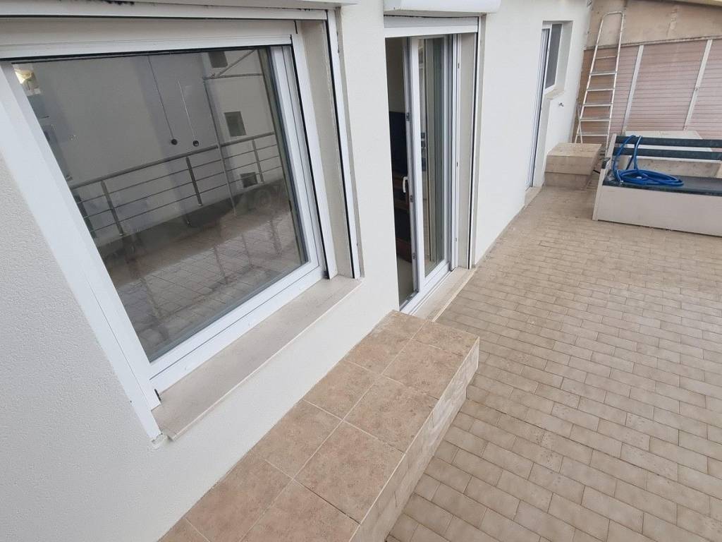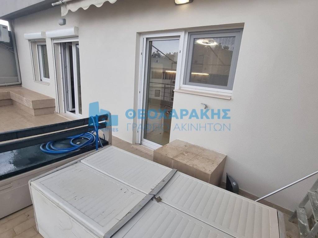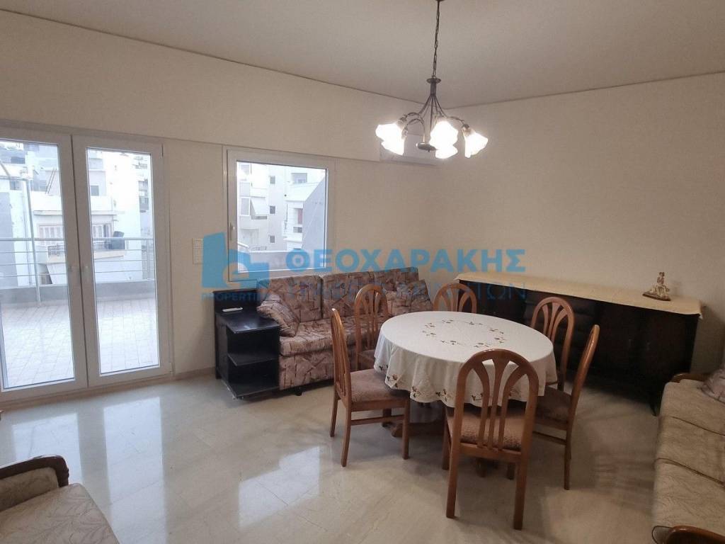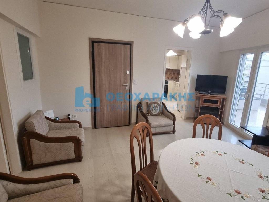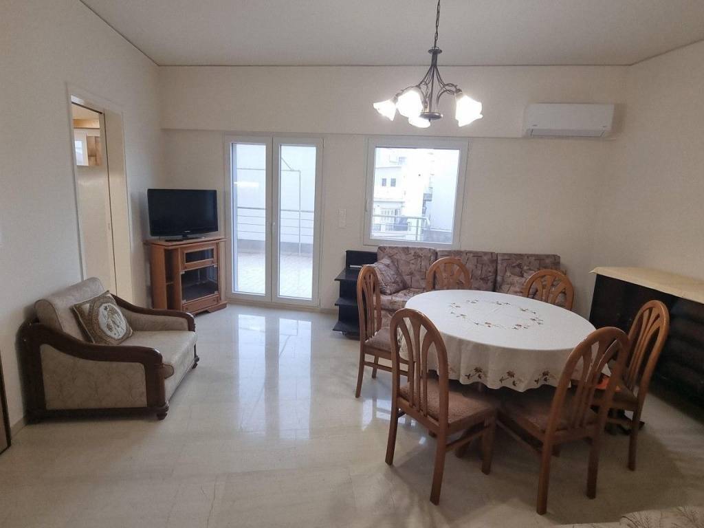 Center, Agia Triada. Penthouse apartment 78 sq.m., 4th floor with 2 bedrooms. The house offers basic furniture and electrical appliances, but can also be delivered unfurnished. It has air conditioning in all areas (in the living room and in both bedrooms), security door and a large terrace of 30 sq.m. with partial sea view. It also has an elevator, solar water heater and pvc windows with double glazing. The common charges are 25 euros. Property code: 14402. - Theocharakis Real Estate Agency - www.eproperties.gr All properties are AVAILABLE and the information listed is accurate. However, if you find any inaccuracies please let us know on our office phones or at info@eproperties.gr