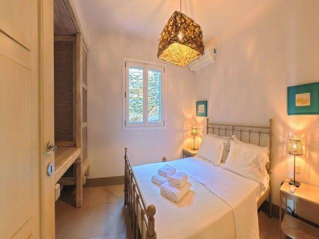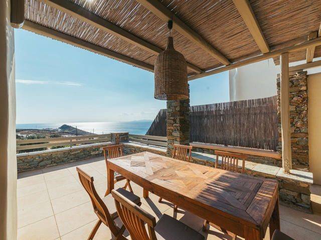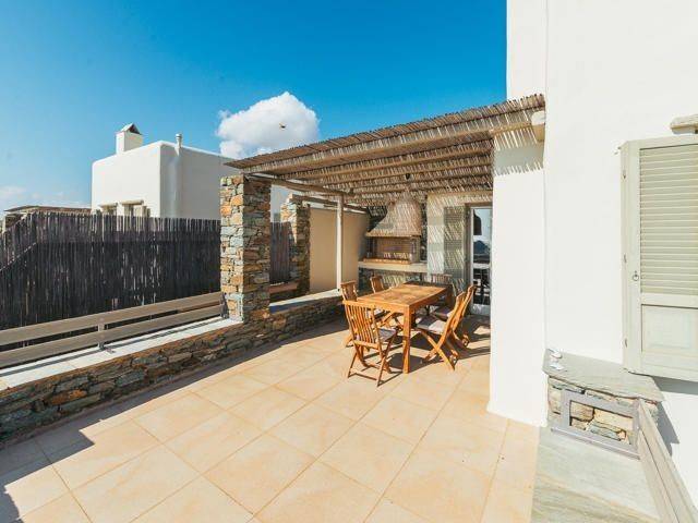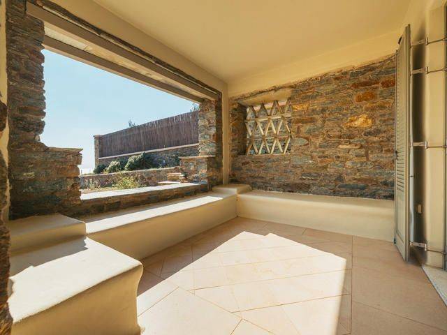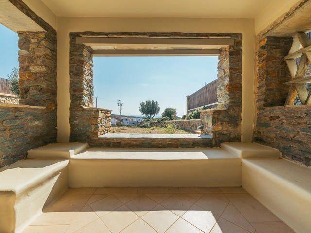SITUATED IN A PANORAMIC POINT, JUST 3km FROM THE CITY OF TINOS (Chora) & THE PORT, A 2-LEVEL DETACHED HOUSE OF 159sqm., HAVING A GARDEN OF 398sqm. AS WELL AS AN APPROVAL FOR THE CONSTRUCTION OF A PRIVATE SWIMMING POOL. Situated just 3km from the Port and the Town of Tinos, in a panoramic point between Agios Sostis and Agios Fokas Beaches, the 2-Level Detached Maisonette enjoys its own Plot – Garden of 398sqm. In detail, the House is of a Total Surface Area of 159.40sqm and is distributed on the Ground Floor of 106.38 and the First Floor of 53.02sqm respectively. On the Ground Floor there are 3 Master Bedrooms each with its own Bathroom and a Guest Room that also has its own Bathroom. On this level there is an Auxiliary Storage Space – Cellar of 19.87 sq m that surrounds and protects the building. In addition, this level enjoys 2 Semi-Outdoor Courtyards where the Master Bedrooms have direct access. The Upper Floor, where the main entrance from the Parking is, enjoys the Living Room with the fireplace, spacious Dining Room, a separate ergonomic Kitchen with built-in appliances and a Guest Bathroom. This level is surrounded by Balcony doors having access to 2 large courtyards that many people could dine and gather but also communicates to its Garden. The Residence has been granted Approval for the construction of a Private Swimming Pool and is being sold together with the corresponding Architectural Plans. A Wonderful Residence constructed with excellent materials and with wonderful aesthetic interventions for a modern family occupancy as well as with hospitality possibilities.