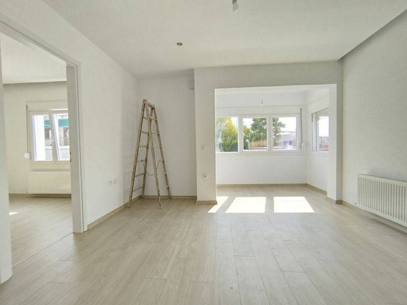 Apartment 99sq.m. 1st floor in the area of Ionia of the city of Serres. It was built in 1970 and completely renovated in 2025. It is facaded, corner and bright. It consists of two spacious bedrooms, a living room, a kitchen and a bathroom. It has laminate floors and external synthetic frames with double glazing. It has individual gas heating, an air conditioner and a parking space. It is located near a square, while there are various businesses in the area such as mini markets, cafes, traditional bakeries, tutoring centers, etc. For the indication of the property, it is necessary to present your identity card.