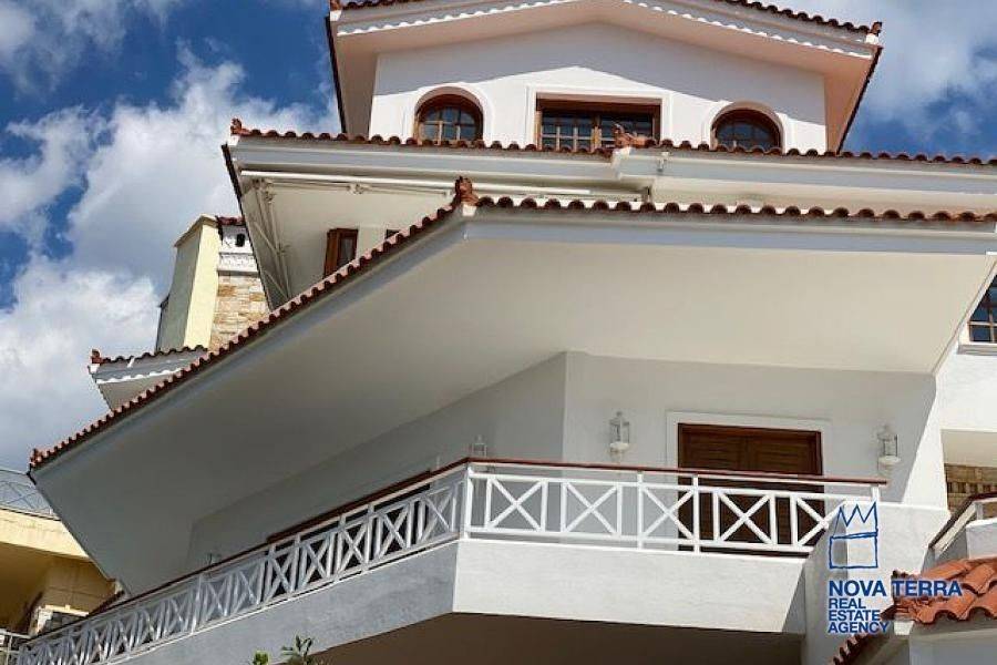 VOULA, House, 460 sq.m, on a plot of 550 sq.m, year built 1990, 8 rooms, Ground Floor, 1st, 2nd, View: Seaview, Unobstracted view, Various Characteristics: Balcony, Bath (6), Escalator, Fire Place (5), Garden, Playroom, Refurbished, Swimming Pool, Master Bedrooms: 2 Master Bedrooms, Flooring: Murble, Heating: Air Conditioning (5), Autonomous Heating, , Attic, BBQ, Boiler, Bright, Corner Block, Double-glazing, From Side to Side, Jacuzzi, Luxury, Maid Room, Satellite TV, Security Alarm, Security Door, Tents, : : : : Parking area: Garage (5), Energy class: A, property ID: 4552, www.nova-terra.gr
