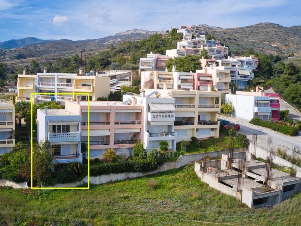 The maisonette is located in a residential complex in Loutra Oraias Elenis, set on an amphitheatrical plot that rises from the road to the sea, with unobstructed panoramic views of the blue sea on all levels. The residence has a total area of 140 sq.m. and is spread over three distinct levels, giving it functional flexibility and the possibility of separate use of each level — ideal for a family, hospitality, or even for renting out one level as an independent unit.