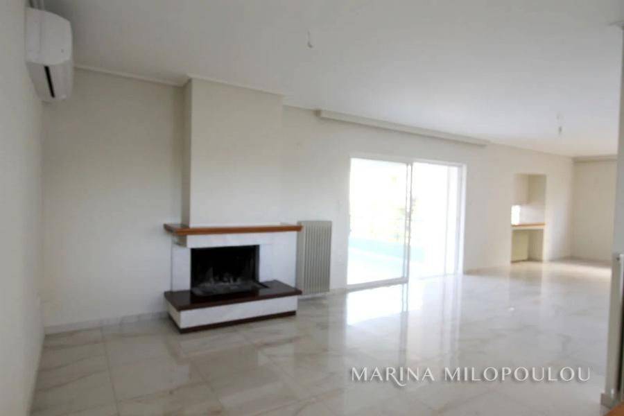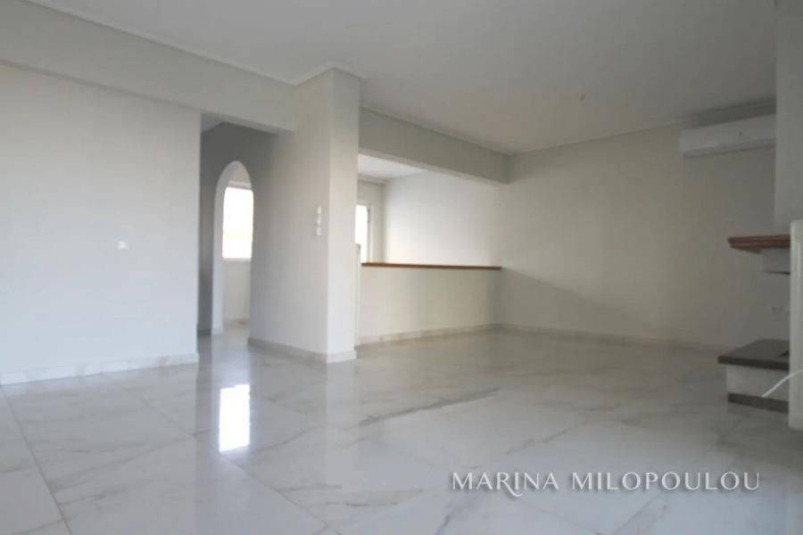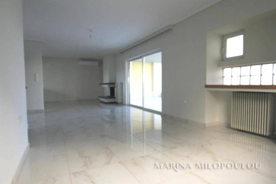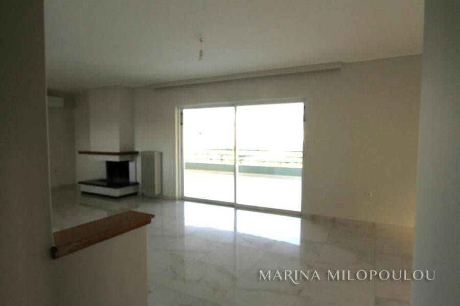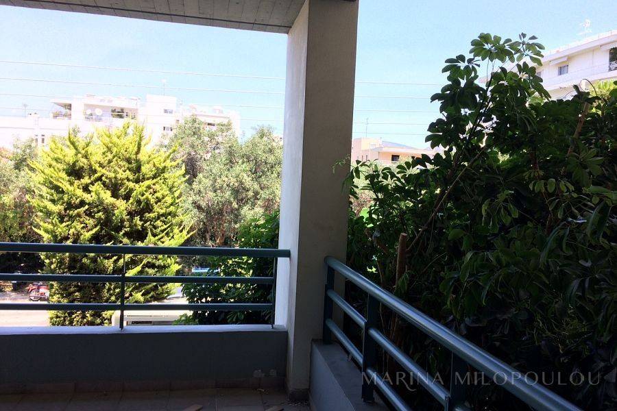 GLYFADA – close to the center a 2nd floor apartment (entire floor) of 125 sq.m. with a large veranda and open, unobstructed views. It comprises an reception area with fireplace, dining area, separate kitchen, 3 bedrooms, 1 bathroom, 1 WC, a large front-facing veranda with open views, and 2 balconies off the bedrooms. It features autonomous natural gas heating, air conditioning units, a solar water heater, oak floors in the berdrooms and marble in the main areas, alarm system, security door, night-rate electricity, elevator, an underground parking space, and a storage room. Well-maintained, modern-design building with a total of 4 properties and a landscaped garden. Also suitable for professional use. Available fro February 1st 2026. Maintenance axpenses apro 70€/month Excellent qute residential location, 850 m from Glyfada’s shopping area (10 minutes walk), 1 km from the 5★ One&Only Resort beach, 1.5 km from the public beaches and the marinas and 22 km from the intern.airport