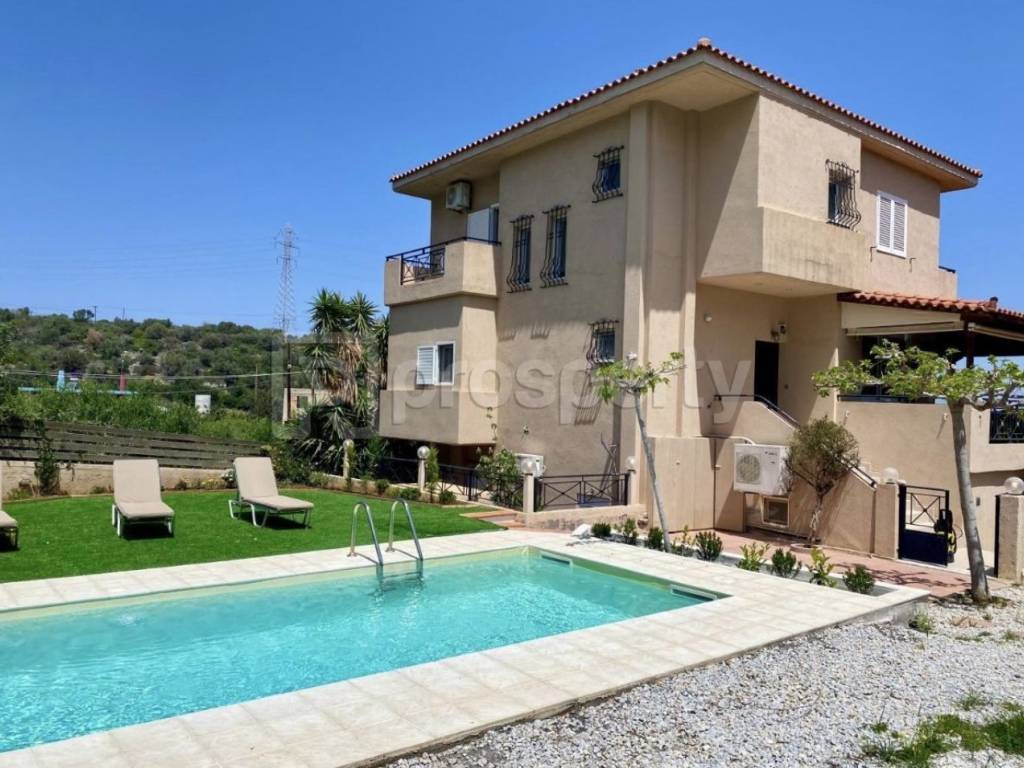 Maisonette in Stalida with a comfortable and practical layout. It consists of 3 bedrooms, 1 bathroom, and 1 WC. It features a kitchen and a living room with access to a terrace. The outdoor area includes a swimming pool, garden, and barbecue with a wood-fired oven, which can be converted to gas, as well as parking space. It is located in a quiet area, just 800 meters from the beach and the supermarket, offering comfort and easy access to essential amenities, suitable for family living or as a holiday home. ☎️ 210 6812500