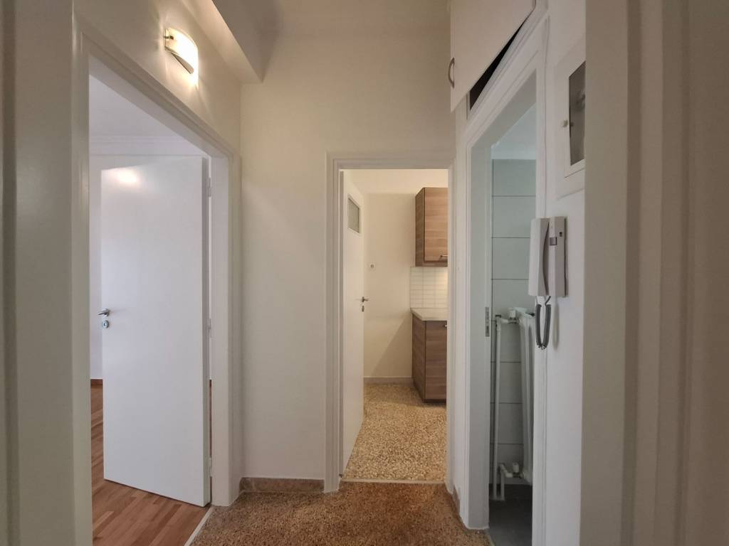 Fulky renovated apartment of 50sq.m. in 1st floor, with balcony, in a quiet street close to Koukaki square. Consists of hall, living room, one bedroom, bathroom, kitchen. It has balcony at the living room and bedroom. It also has security door, aluminum frames, windows screens, a/c in living room and bedroom, kitchen with oven and ceramic hobs, balcony tent, alarm wiring, there is elevator in the building. Immediately available, for long term lease. Brokers are not accepted.