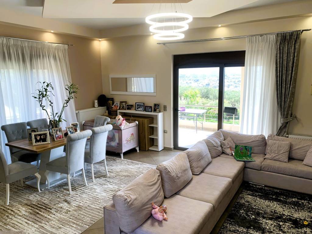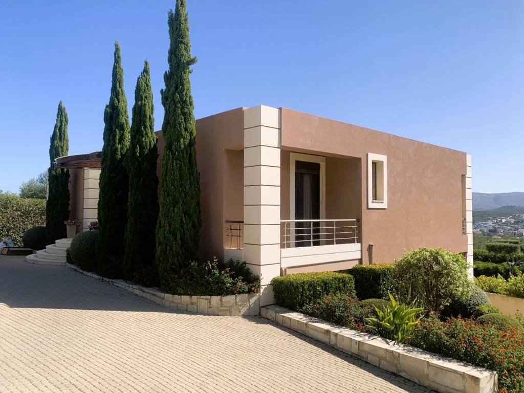 Modern villa with sea and White Mountain views, near Kalyves, Crete This pleasant and bright modern villa (built in 2013) is all on one level and features a garden, swimming pool, and basement, making it ideal for a personal residence or rental investment. The property offers 150m² of bult-up area on the main level and 45m² of basement space on a private 2000m² plot, guaranteeing privacy and tranquility with views of the sea and the famous White Mountains. A barbecue area and small swimming pool are already in place, with the possibility of modifications if desired. The layout of this villa offers spaciousness and comfort: A large and bright open-plan living area with a recently renovated fitted and equipped kitchen featuring new black and white cabinetry (for the worktop and upper cabinets). New photos of the entire property will be available soon. This room benefits from direct access to a large covered terrace with unobstructed views of the garden, the sea, and the mountains, ideal for relaxing and entertaining. Three comfortable bedrooms with built-in wardrobes, two bathrooms, and a toilet perfectly complete this living space on this level. Aluminum windows with double glazing and mosquito nets. Air conditioning and gas central heating. The 45m² basement is accessible via an interior spiral staircase or the exterior driveway and an automated garage door. This space offers several possibilities depending on the needs of the future owners and could be used as a garage, a workshop, or a studio with independent access. The landscaped garden surrounding the villa is meticulously designed and well-maintained, offering beautiful vegetation in an ideal setting for entertaining guests and relaxing around the pool and barbecue area while enjoying breathtaking views of the surrounding nature. Several other shaded areas provide various spaces for leisure or relaxation. Property boasting a prime location near a charming seaside village where you'll find essential amenities and services. Energy rating: B - Solar water heater - Contact us for more information. Just 30 minutes from the beautiful city of Chania and its international airport, 10 minutes from the sandy beach of Kalyves, and 15 minutes from the stunning beaches of Almyrida and Plaka, your dream begins here... Welcome to Crete! We speak: English - German - French - Greek The listed sale price excludes agency fees. (2.5% payable by the buyer; the remainder by the seller) For property inquiries: A signed viewing agreement and proof of identity will be required. In accordance with Law No. 4072/11-04-2012 (Official Gazette No. 86A)