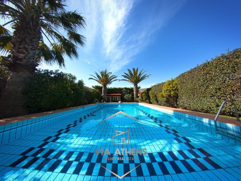 This unique maisonette in Lagonisi, Kalyvia Thorikou, offers an impressive 325 sq.m. of living space across three levels, plus a studio on the roof. Nestled in a tranquil neighborhood, this property features a large swimming pool (7x14) and a beautifully maintained garden, all set on a generous 1,000 sq.m. plot. The layout includes: - Ground Floor (100 sqm)*: 1 bedroom, playroom, kitchen, and 1 bathroom. - 1st Floor (100 sqm)*: Spacious living and dining areas featuring a fireplace, kitchen, and a wc. - 2nd Floor (100 sqm)*: 3 bedrooms, including a master suite with ample wardrobes, and an additional bathroom. - Studio*: A versatile space suitable for guests or varied uses. Additional features include: - 4 bathrooms and 2 wc. - 2 kitchens for convenience. - 3 enclosed parking spaces. - A storage room. - An elevator connecting all floors. - A machine room located in the basement. This well-maintained property is ideal for families or those seeking a luxurious yet private living experience in a serene setting. Price: €950.000. VIA ATHENS REAL ESTATE, contact phone: 2121030916, +306937006261, email: info@via-athens.com, website: www.via-athens.com