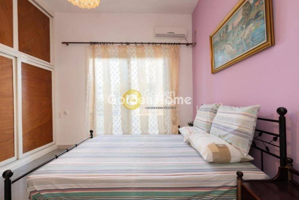 Ground-floor apartment of 100 sq.m. for rent, fully furnished, bright and spacious, located in a quiet area. The property consists of two bedrooms, a comfortable living room, a kitchen, and one bathroom. It features autonomous heating, private parking space, and a large garden, ideal for families or for those seeking comfort and outdoor living. Available from September 2026 For Rent, apartment, Full Bathrooms: 1, Living Area: 100 Sqm, Rooms: 2, Year Built: 2010, View, Balcony, Furnished, Fireplace, Garage, Floor Number: Ground Floor, Facade, Pets Allowed, Floor Type: Marble, Lot Size: 1000 Sqm, Heating Controller: Autonomous, Heating Medium: Current, Zoning: Residential, Energy Class: B