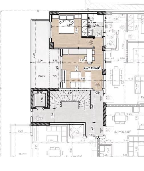 Marousi, O.A.K.A. - Apartment 45sqm bedroom, levels 1, 1st, under construction, year built 2026, energy class A, living room, hall, kitchen, bathroom, heating type: autonomous (heat pump), air condition, a/c type fan coil, parking ground floor, quiet, luminous, unobstructed view, frontage, painted, electric roller shutters, storage space, external thermal insulation, balconies, large balconies, elevator, thermal shut-off frames, double glazed windows, door screen, wood floors, handicap ramp, three phase electricity, night electricity discount rate, secure door, alarm, video doorbell, luxurious, ev charger, pets allowed, residential zone, access from asphalt, close to attiki odos (up to 2000m), close to sports facilities (up to 100m), close to metro/train (up to 500m).
