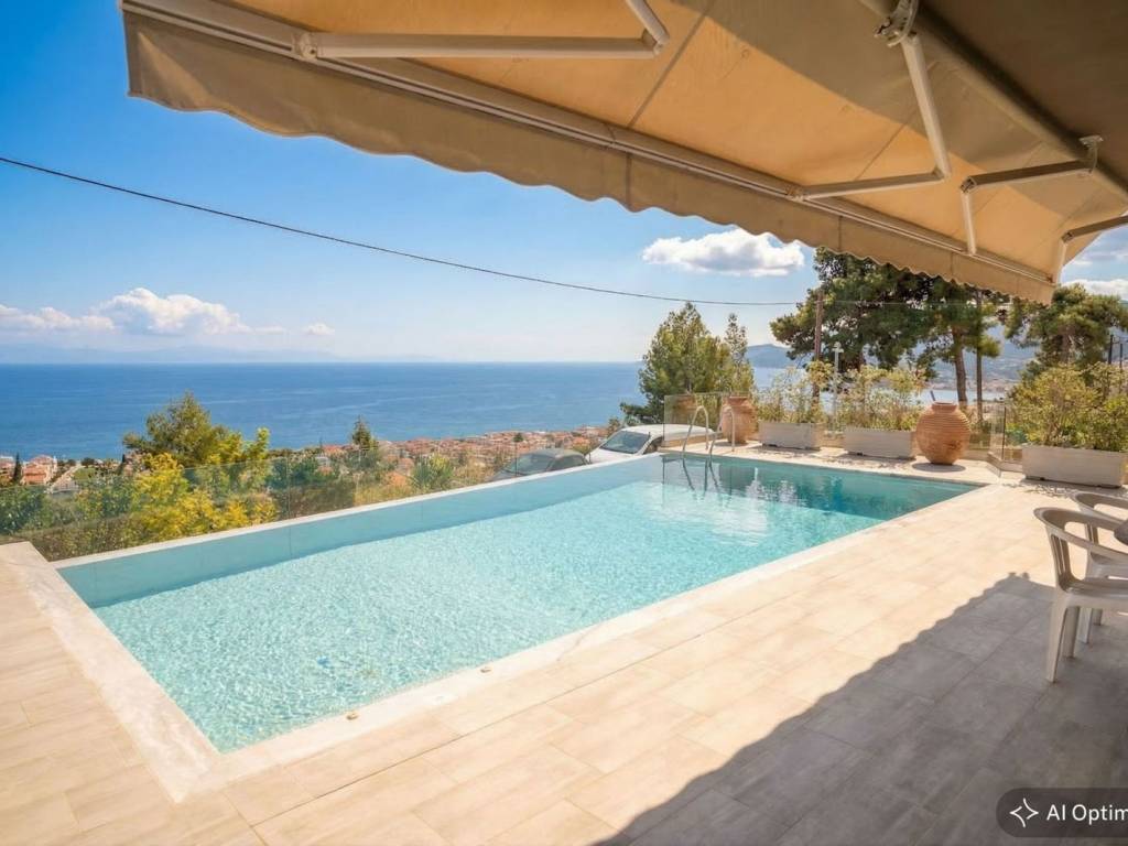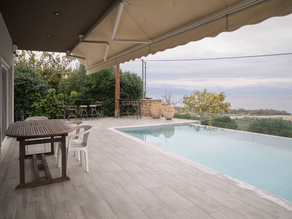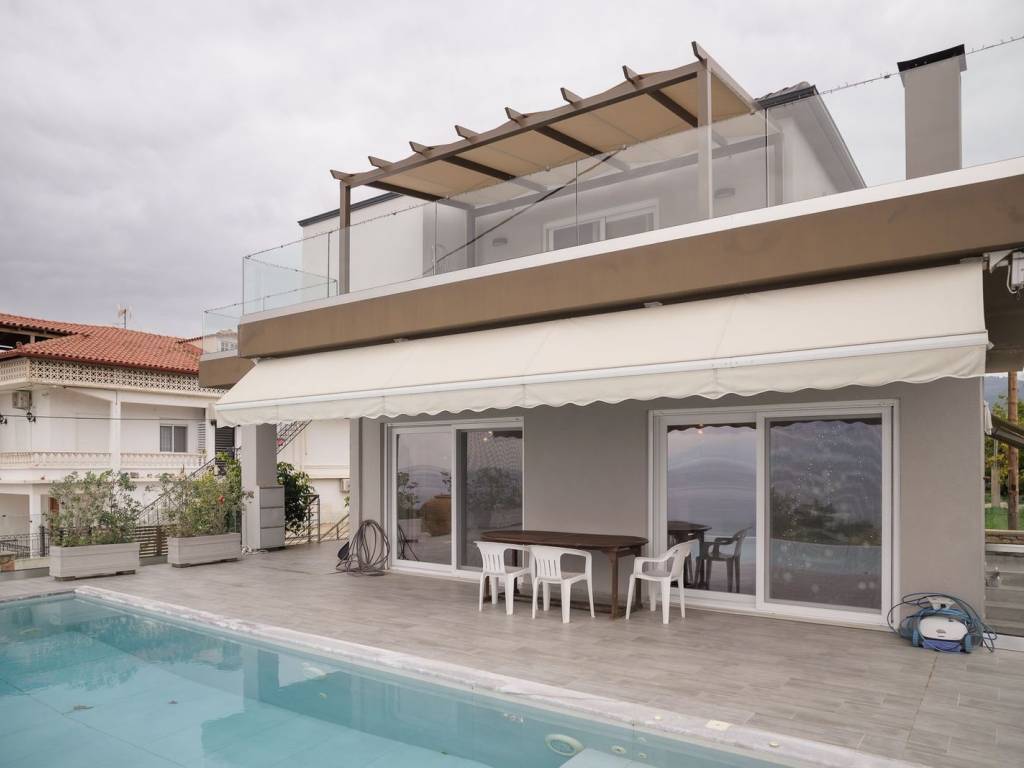 Set in an exceptional location overlooking the sea, this elegant 320sqm contemporary residence is offered for sale, showcasing refined aesthetics, premium construction, and a unique sense of tranquility. Spread across three functional levels, the home is perfectly designed for both relaxing coastal living and sophisticated hosting. The outdoor space stands out for its large private swimming pool, beautifully landscaped terrace with glass balustrades, and an atmosphere of complete privacy. The panoramic sea views create an impressive backdrop throughout the day and into the evening. The elevated ground floor (100sqm) features an open-plan living and dining area with a fully equipped kitchen. Expansive glass openings allow natural light to flood the interior, while offering uninterrupted views toward the sea. Two bedrooms and a bathroom complete this level. The lower ground floor (160sqm) serves as an independent apartment with its own living area, kitchen, three bedrooms, and bathroom — ideal for guests or autonomous use. The first floor (45sqm) is exclusively dedicated to the master suite, featuring a private bathroom, walk-in closet, and a spacious terrace with outstanding views. A serene and independent retreat designed for ultimate privacy and comfort. Additional features include an energy-efficient fireplace, full security system with cameras and alarm, mosquito screens, security door, photovoltaic panels for energy autonomy, and a solar water heater. The property is delivered fully equipped with built-in kitchen appliances and air-conditioning throughout. A residence that harmoniously combines high-end architectural design with everyday convenience, in perfect balance with its natural surroundings. An exceptional opportunity for those seeking a luxury coastal home with premium amenities. Contact us to arrange a private viewing and experience the property up close. Location: The prefecture of Corinthia is located in the northeastern Peloponnese. Unique Features: The prefecture has a variety of destinations ideal for summer and winter getaways. Corinthia is characterized for its rich diversity as it perfectly combines mountain, nature and sea escapes while it has a rich history and culture. A trademark of the prefecture of Corinth is the Corinth Canal, an impressive project that is navigated every year by more than 15,000 ships. Important cities of the prefecture are Corinth, Loutraki, Xylokastro, Agii Theodoroi and Kiato. Accessibility: Access to Corinthia is easy and can be done by car through the existing road network, and is only 84 km away from Athens and 132 km from Patras. Furthermore, long-distance buses provide regular services to most areas of the prefecture and there is a railway connection between the prefecture of Corinthia and Athens. Investment Opportunity: Greece is one of the most popular holiday destinations in the world, with the prefecture of Corinthia being in particularly high demand and becoming an increasingly attractive destination for investors in winter and summer.