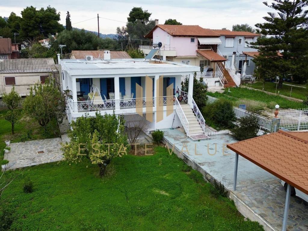 Detached House for Sale | Kalamos – Agioi Apostoloi ESTATE VALUE EXCLUSIVE Property Consultant: Manos Papailias A two-level detached house (Ground Floor & First Floor) is offered for sale in an excellent location in Kalamos – Agioi Apostoloi, just 250 meters from the sea, ideal as a holiday home or an investment opportunity. General Characteristics Total living area: 108.39 sq.m. Plot area: 800 sq.m. Levels: Ground Floor & First Floor Year of construction: 1975 Renovation: 2021 (ground floor) Parking spaces: 2 (open-air) Layout Ground Floor – 33 sq.m. Open-plan kitchen – living room – bedroom 1 Bathroom First Floor – 70 sq.m. 2 Bedrooms 1 Bathroom 1 Kitchen 1 Living room Property Condition Ground Floor: Fully renovated First Floor: Requires renovation The separation of the two levels offers the possibility of independent use or rental exploitation. Heating & Energy Features Autonomous oil heating Air conditioning Solar water heater Thermal insulation Aluminum window frames with double glazing Energy Certificate: B Flooring: Laminate & Mosaic Location & Views 250 m from the beach 73.4 km from the airport Sea & green views Northeast orientation Additional Features Furnished Bright, airy, and sunlit Window screens Electrical appliances Storage room Garden with trees BBQ Security door Three-phase electricity No communal charges Verandas Septic tank Pets allowed Quiet neighborhood Ideal For Holiday home, short-term rental (Airbnb), investment, income property For property viewings, presentation of a valid ID or passport is required. Property features and information are provided by the owner, who bears full responsibility. Map location is indicative. ESTATE VALUE – GOUTZIOULIS Argolida | Corinthia | Arcadia | Achaia Nafplio: Polyzoidou 4 Call Center: +30 27520 96169 www.estatevalue.gr info@estatevalue.gr