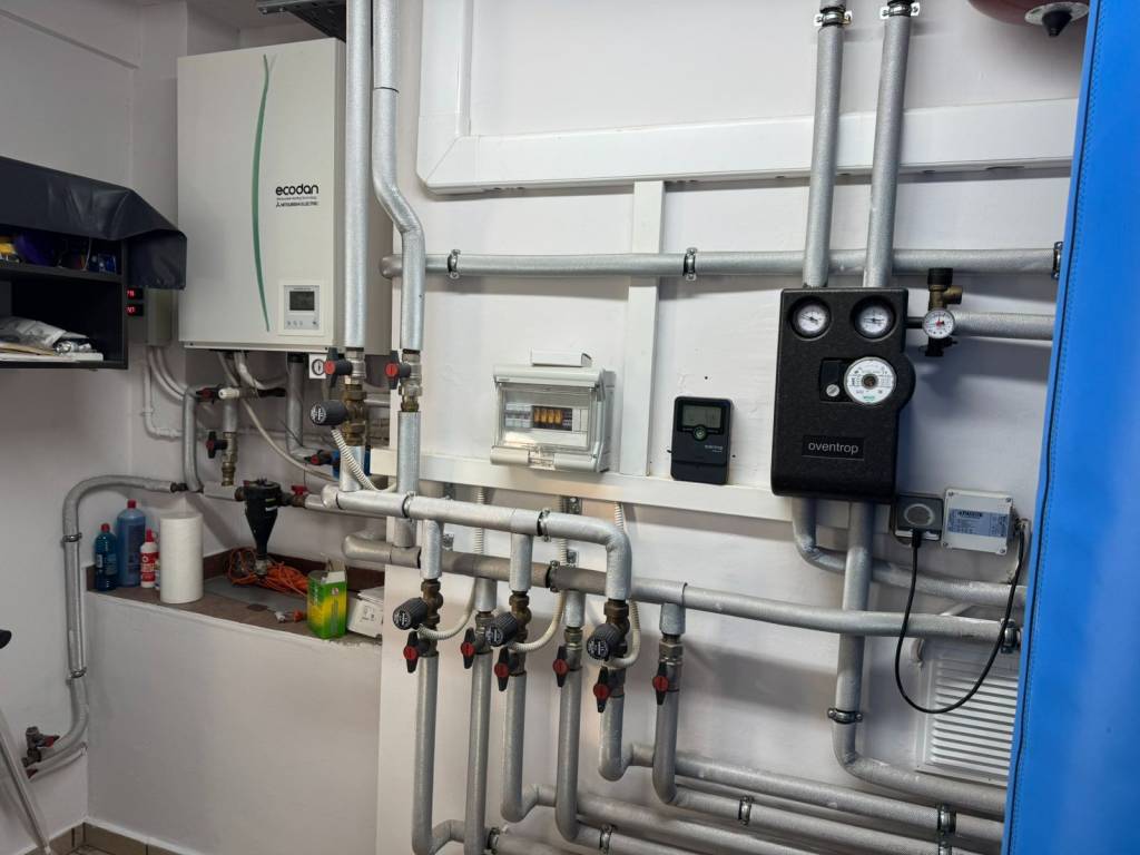 Ενεργειακή Απόδοση & Θέρμανση Η κατοικία διαθέτει Πιστοποιητικό Ενεργειακής Απόδοσης Κατηγορίας Α (2024). • Φωτοβολταϊκό σύστημα 10 kW εγκατεστημένο στην οροφή, με 15ετή σύμβαση με τη Δημόσια Εταιρεία Ηλεκτρισμού • Πλήρης κάλυψη των ετήσιων ενεργειακών αναγκών (ηλεκτρισμός, θέρμανση, ζεστό νερό). • Αντλία θερμότητας Mitsubishi Zubadan σε συνδυασμό με ενδοδαπέδια θέρμανση. • Ηλιακός θερμοσίφωνας στο κιόσκι για υποστήριξη ζεστού νερού χρήσης • Boiler τριπλής ενέργειας για παροχή ζεστού νερού στην κατοικία, το κιόσκι και τον αποθηκευτικό χώρο • Κλιματιστικό Daikin στο σαλόνι
