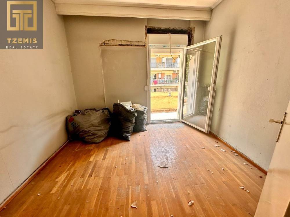 The property consists of bedroom, an open-plan living room/kitchen, and a bathroom. Additionally, it features an elevator, synthetic window frames with double glazing, a security door, and wooden flooring. The apartment requires complete renovation.