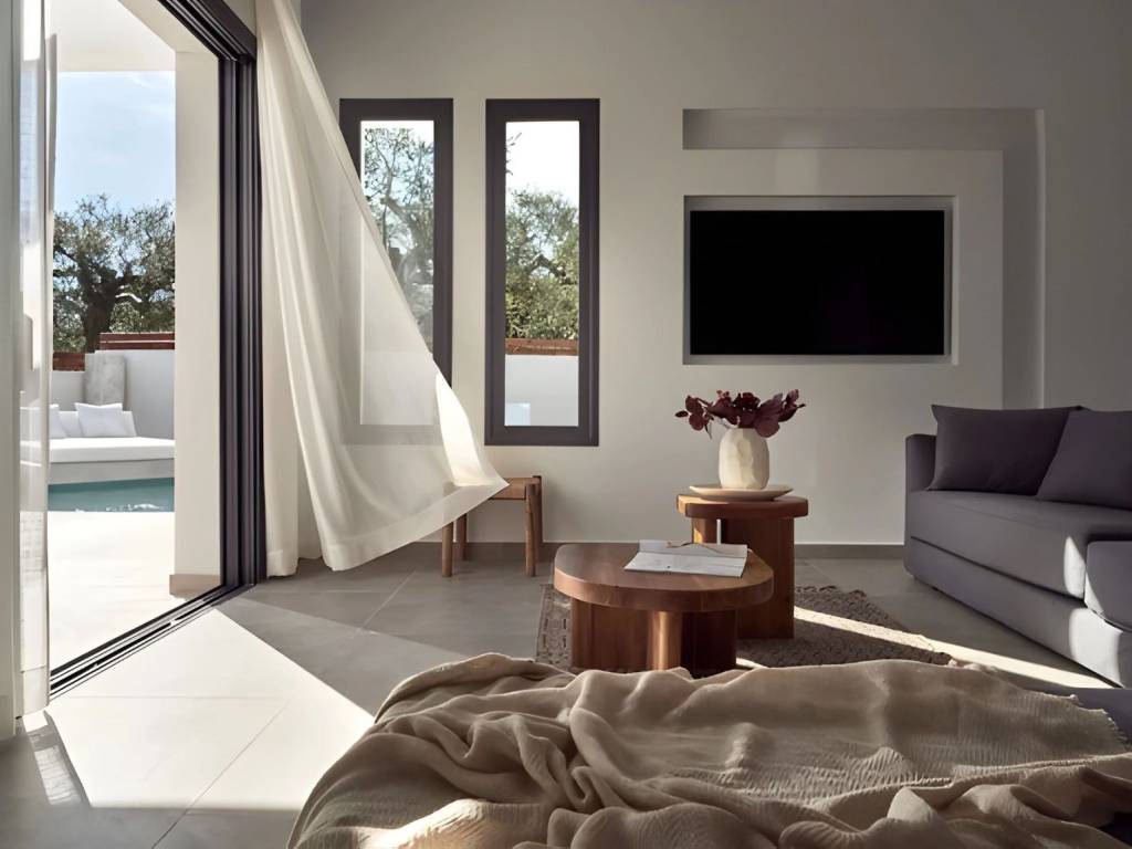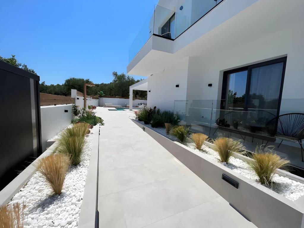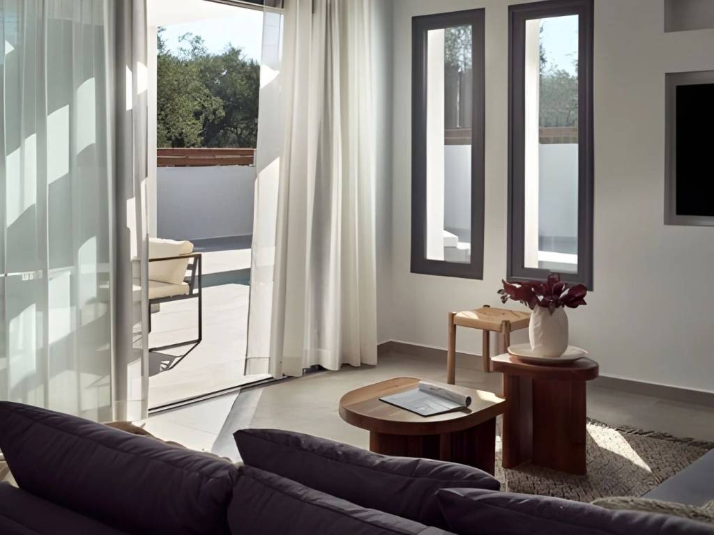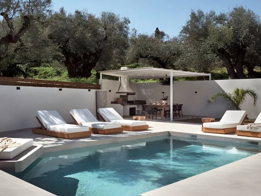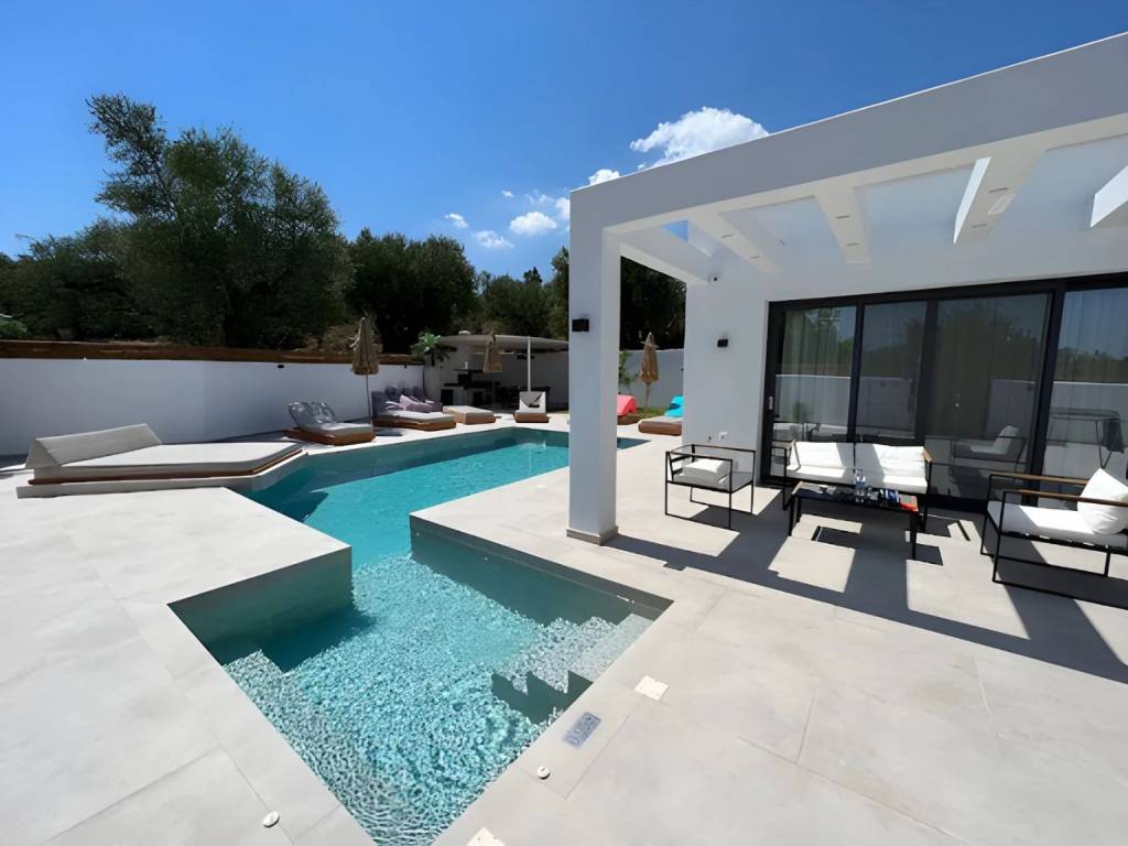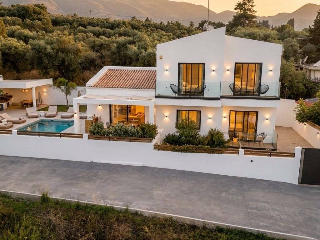 Luxury Newly Built Villa for Sale in Zakynthos, Mouzaki A luxurious, newly built residence of 160 sq.m. (2022) is offered for sale on a 5,661 sq.m. private plot in the tranquil area of Mouzaki, Zakynthos. Designed to the highest standards, this exceptional property combines elegance, comfort, security, and functionality, making it ideal both as a private residence and as a high-performing investment. Notably, the villa is already operating successfully as a tourist accommodation, delivering strong and proven returns—an immediate advantage for investors seeking income from day one. Property Overview Total built area: 160 sq.m. Plot size: 5,661 sq.m. Year of construction: 2022 Bedrooms: 4 Bathrooms: 4 (all en-suite) Swimming pool: Heated, with jacuzzi Parking: 2 private spaces Status: Fully furnished & operational Interior Features Four spacious en-suite bedrooms, each with direct access to private balconies overlooking the pool Bright and welcoming living room, ideal for everyday living and entertaining Fully equipped modern kitchen with ergonomic design and premium appliances Storage room, 5 air-conditioning units, and solar water heater High-quality furnishings and tasteful décor included Outdoor Living The exterior spaces are carefully curated to deliver a true resort-style experience: Heated swimming pool with jacuzzi Sun loungers with umbrellas and elegant seating areas Fully equipped built-in BBQ with refrigerator Spacious outdoor dining area Outdoor shower Decorative trees and landscaped planting offering shade, privacy, and a serene atmosphere Construction & Technical Excellence Energy-efficient aluminum frames Thermal façade and high-grade insulation Independent mechanical room 40 m³ main water tank + 500-liter reserve tank Advanced electromechanical design ensuring functional independence between indoor and outdoor systems Optimized energy savings and operational efficiency Security & Privacy Full security system and CCTV cameras Gated property with complete privacy Quiet, peaceful setting with excellent accessibility Location Highlights Close to Laganas, one of Zakynthos’ most vibrant areas Near popular seaside destinations such as Kalamaki and Agios Sostis Short distance to beaches, restaurants, cafés, shops, and everyday amenities Ideal balance between tranquility and proximity to island life Investment Profile Proven high rental performance Turnkey investment – fully furnished and operational Suitable for luxury holiday rentals or private villa living Located in one of the fastest-developing areas of Zakynthos This outstanding villa represents a rare opportunity to acquire a modern, income-generating luxury property in Zakynthos—offering immediate returns, long-term value, and an exceptional lifestyle in one of Greece’s most beautiful Ionian islands.