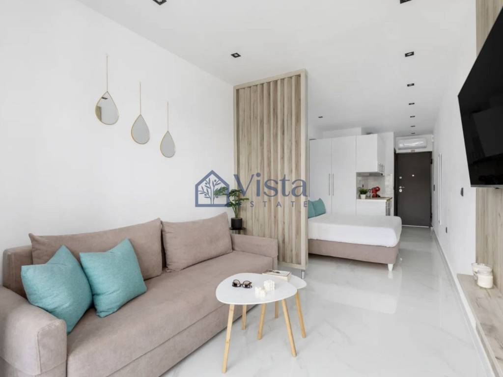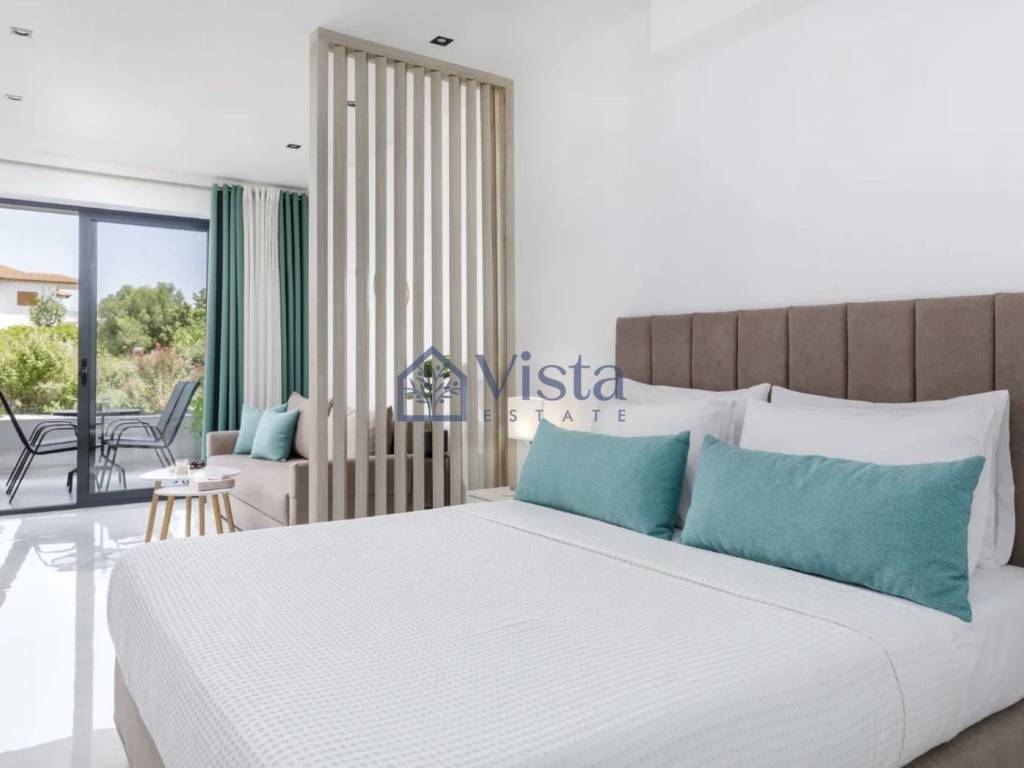 For sale: Modern studio apartment with 30 m² of internal space, situated on the ground floor, close to the sea in beautiful Kassandra. Built in 2022, this fully furnished property is ready for immediate move-in and features a smart design, offering both comfort and style. The open layout provides a bright living area, a fully equipped kitchen, and a contemporary bathroom with quality finishes. Residents have access to a communal swimming pool, perfect for relaxing and socializing. The apartment enjoys an energy efficiency rating of A, ensuring low energy use and cost savings. Large windows allow natural light to brighten the space and offer lovely views. Kassandra is a highly sought-after area known for its stunning beaches, crystal-clear waters, and breathtaking landscapes. The region combines serene seaside living with lively options for dining, shopping, and entertainment, all within easy reach. This sea front apartment is ideal as a holiday retreat, investment, or comfortable year-round home. For further information or to schedule a viewing, please contact Vista Estate.