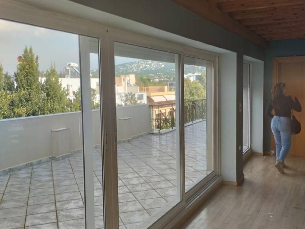 Μεζονέτα 3ου ορόφου με 4 Υ/Δ και 5 μπάνια. Τα τρία υπνοδωμάτια βρίσκονται στον πάνω όροφο με το μάστερ να βρίσκεται στο ισόγειο. Το κάθε Υ/Δ έχει το δικό του μπάνιο και υπάρχει και ένα ακόμα κοινό. Είναι φωτεινό με μεγάλο σαλόνι με τζάκι, ξύλινα πατώματα και μεγάλα μπαλκόνια. Η θέρμανση γίνεται μέσω κλιματιστιών σωμάτων. Η πολυκατοικία διαθέτει και κοινόχρηστη πισίνα. Ιδιόκτητη ταράτσα, τζάκι, ηλιακός.