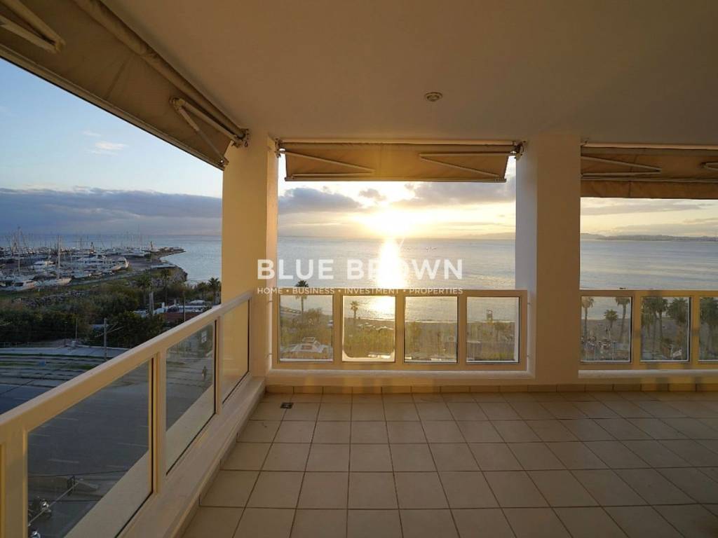 On the Athens Riviera, in the area of Palaio Faliro, a luxury apartment of 141 sq.m. is offered for sale. The property is located on the 6th floor, on a single level, within a modern residential complex with 24-hour security, just a few meters from Flisvos Marina and the sea. This is a bright, through-layout, high-end apartment with stunning sea views (and views of Mount Hymettus from the rear balconies), combining comfort, security, and a prime location. It features two bedrooms, one of which is a master bedroom with en-suite bathroom and walk-in closet, two bathrooms, one WC, an independent kitchen, and a spacious living room with a fireplace. The apartment has wooden floors, aluminum window frames with double glazing, and is in very good condition. It is offered with three enclosed parking spaces and a storage room. Amenities include an elevator, security door, alarm system, video intercom, air conditioning, autonomous natural gas heating, and large verandas with electric awnings. The property enjoys a unique location, next to Flisvos Marina, with direct access to Glyfada and the Ellinikon redevelopment project, offering a rare combination of luxury, privacy, and unobstructed sea views, in one of the most sought-after areas of the southern suburbs of Athens. The property has an Energy Performance Certificate, Class E.