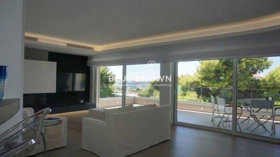In East Attica, in the area of Vouliagmeni, an excellent penthouse apartment on the 2nd floor with a stunning sea view is available for rent. This is a luxurious apartment, construction of 2018, which comes fully furnished and equipped with all electrical appliances. It consists of 3 master bedrooms with 3 bathrooms, a w/c, a spacious living room with large balconies offering a wonderful view and a functional kitchen in the same space. It features wooden floors, aluminum frames with double glazed windows and screens, a security door, an alarm system and a satellite dish. The heating is autonomous with fan coil units, and there are also air conditioning units for cooling and a solar water heater with a boiler for hot water. It is located in an amazing location, very close to the beach, with direct access to the market and public transportation. It is a B+ energy efficiency–rated property.