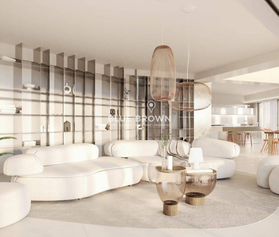 A luxurious floor apartment is available for sale in Voula, covering 154,13 sq.m., on 2nd floor. The property is under construction and is expected to be completed in 2026. It features 3 bedrooms, 3 bathrooms, a modern minimalist living room and a spacious kitchen designed with contemporary materials and advanced technology. It features an elevator, a secure entrance door, an alarm system, a video phone door, an internal staircase, double-glazed windows, insect screens and a 6sq.m storage room. The apartment also includes advanced amenities such as underfloor heating, air conditioning and a solar water heater. The location offers immediate access to the sea, shopping areas and public transportation. This impressive residence combines luxury, functionality and comfort in one of the most sought-after areas of Voula.