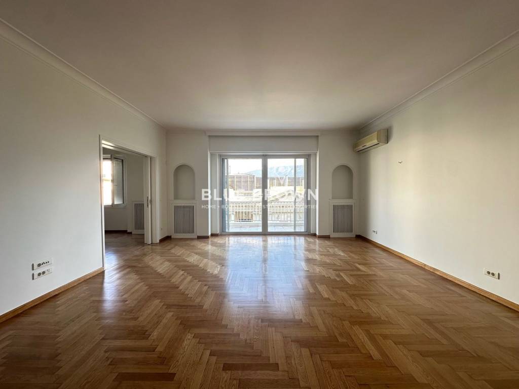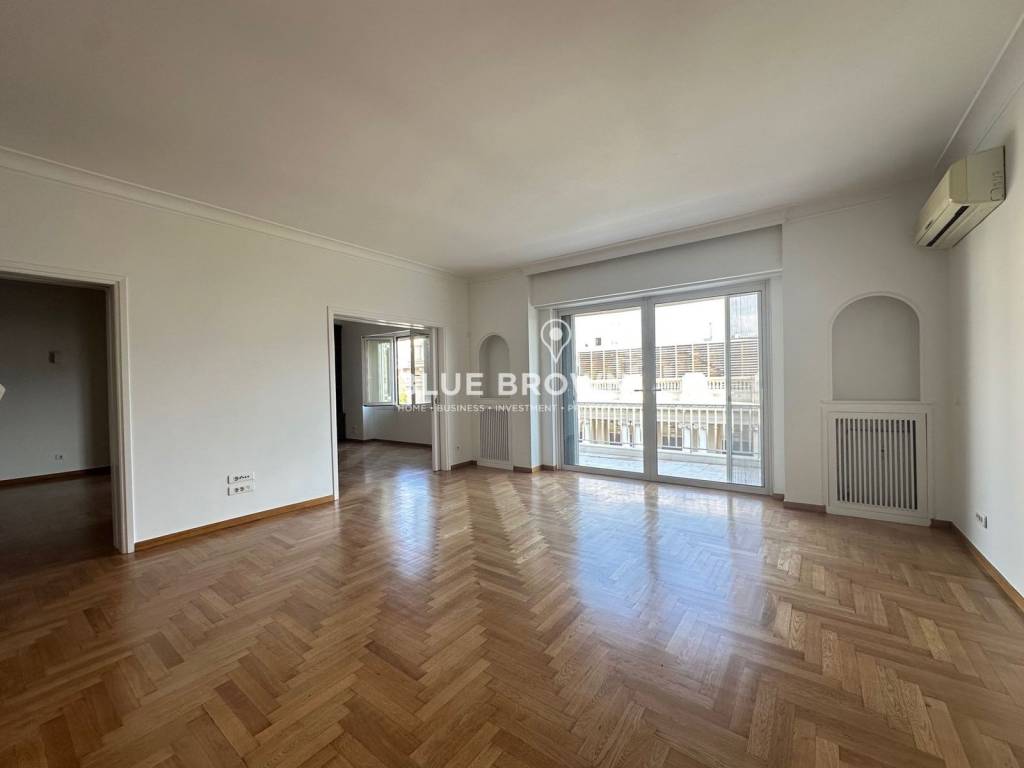 In the area of the Royal Palace, an exceptional 240 sq.m. apartment on the 5th floor is available for rent. It combines a sense of luxury with comfort and elegance. The entrance is impressive, featuring a hall that leads to a spacious living room, office, and dining area, while from the wide balcony one can enjoy views of archaeological sites and the greenery of the park. The kitchen is large and modern, with a window offering views of Lycabettus Hill, creating a bright and pleasant atmosphere. The rear part of the apartment, fully separated from the front, hosts the private area with one master bedroom and two additional full-sized bedrooms that share a complete bathroom. All bedrooms are particularly bright and open onto a quiet and comfortable terrace, adorned by an impressive, large magnolia tree. Additionally, there is a staff room with its own bathroom, as well as a separate WC near the entrance area. The residence also features a laundry room for added functionality. Oak floors throughout the apartment add warmth and character, while aluminum window frames with double glazing ensure comfort and energy efficiency. Heating is provided by natural gas with adjustable radiators, and the property is in excellent condition and fully painted. Amenities include an elevator, security door, video intercom, a 6 sq.m. storage room, air conditioning, electrical appliances, and easy access to the metro. The architectural signature of Beraha and the meticulous maintenance highlight the property as a bright, dual-aspect, and stately apartment that combines luxury with functionality, offering a truly distinctive living space. The property can also be offered as an office or professional space. The property has an energy efficiency rating of G.