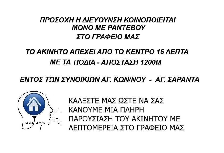 The exact address of the property is only shared with our office Two-room apartment for sale under construction with parking, delivery end of 2026. Distance from the center 15 minutes walk. Good and quiet area. Our office is a family business and operates reliably and confidentially. If you are looking for another property or want to rent or sell your property, call us and let us know so we can serve you. Spanoulis Properties https://www.spanoulis.eu/