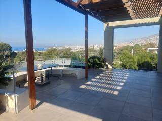 Vouliagmeni in excellent location overlooking pine trees and beautiful sea view, available for sale building of total surface 600sq meters, in corner plot 750sq meters, with beautiful garden and pool. Consists of 295 sq meters maisonette in 2 levels ( 2nd-3rd floor) spacious living and dining room, double frontage fireplace, beautiful sea view and greenery, separate kitchen 30sq meters, 3 bedrooms, 1 en suite, 3 bathrooms, 1 wc, laundry room and 1st floor apartment with double frontage 150sq meters, with spacious living room, open plan kitchen, 2 bedrooms,1 en suite, 2 bathrooms, maid's studio at the ground floor, (50 sq meters approximately) storage and auxiliary spaces 180 sq meters, elevator accessible to all levels from basement to 3rd floor, big balconies, piloti about 140sq meters, wc and swimming pool changing rooms, 3 large parking spaces with charger for electric car, security alarm system, code 57100