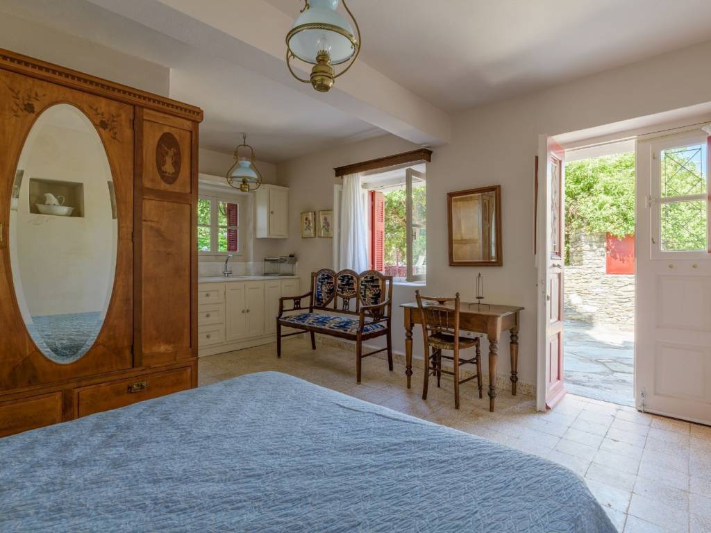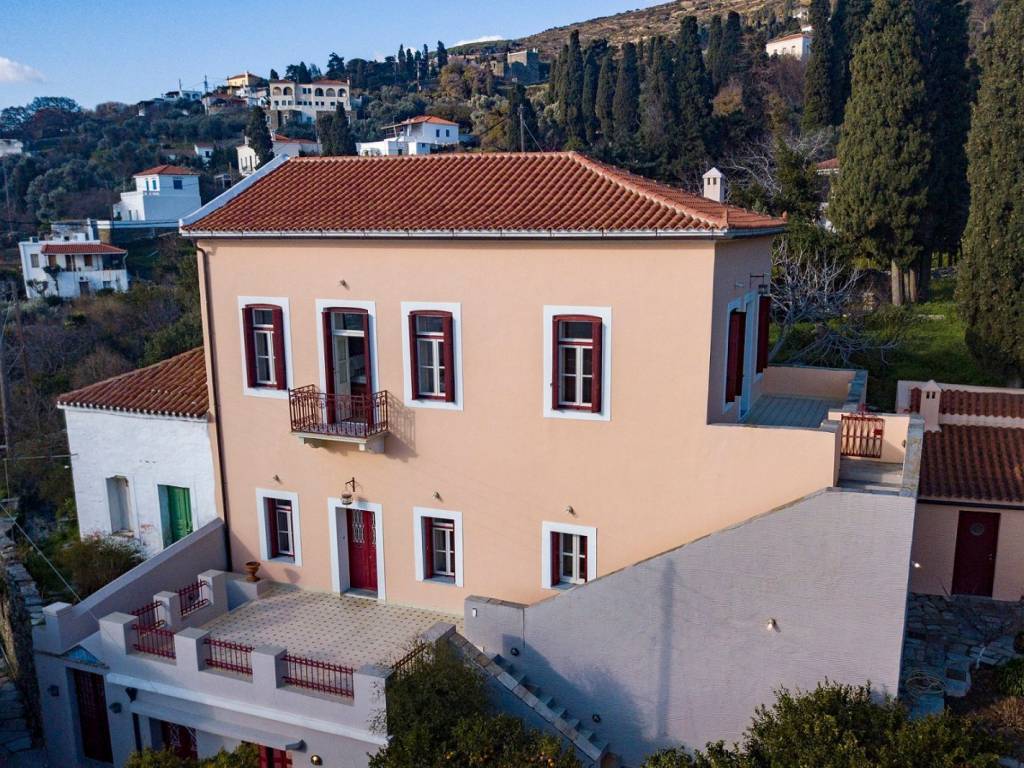 A beautiful mansion, built in 1912, with a strong traditional character, located very close to the town, in the lush village of Lamyra. The property spans a total of 280 sq.m., of which 42 sq.m. are auxiliary spaces. It is situated on a 590sq.m. plot and is developed over 3 levels. Within the plot, there is an active spring, through which the property receives supplementary water supply. The main residence occupies 2 levels. The first level features a living/dining room with a fireplace, a kitchen with an additional dining area, and a W.C. The living room opens to a beautiful terrace with a unique view of the island and the sea. The second level offers 1 master bedroom with a sitting area and an en-suite bathroom, along with 3 additional bedrooms that share 1 bathroom. The view from the balconies and the terrace on the first floor is magical. On the ground floor of the property, there is an independent guesthouse, consisting of an open-plan space, which includes a bedroom, kitchenette, bathroom, and a very picturesque courtyard that leads to the carefully maintained outdoor area. A traditional Cycladic mansion on the unique island of Andros.