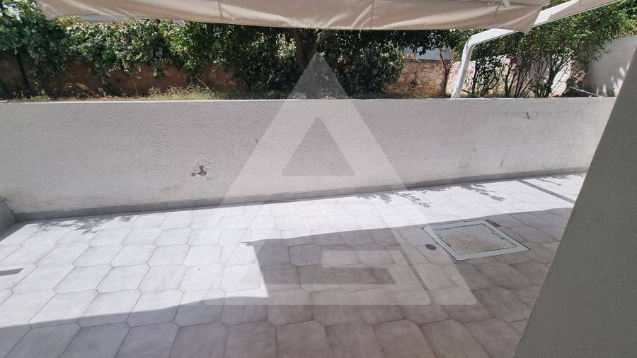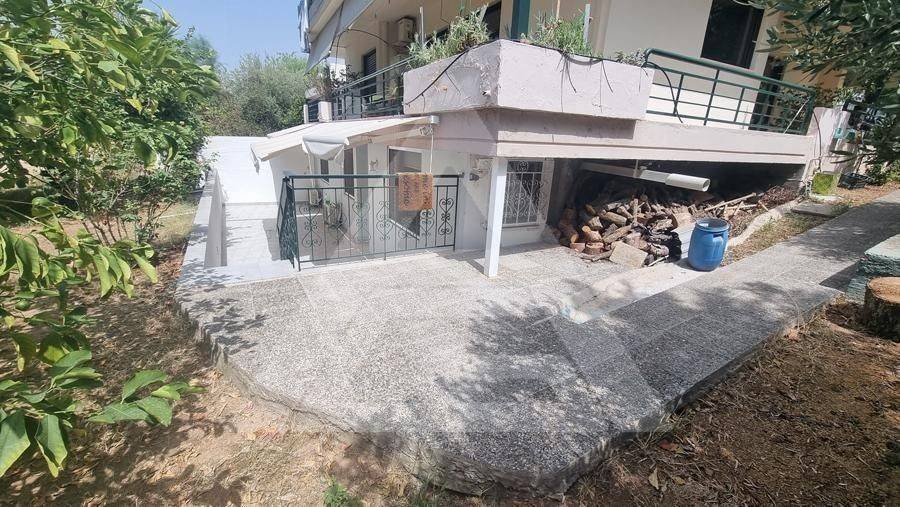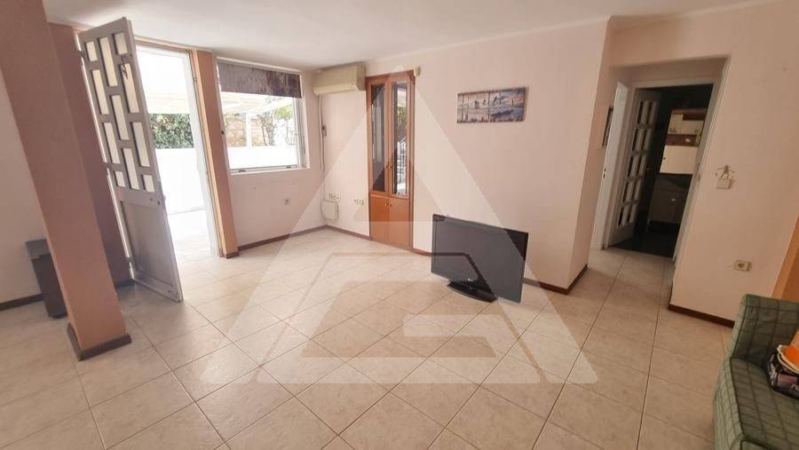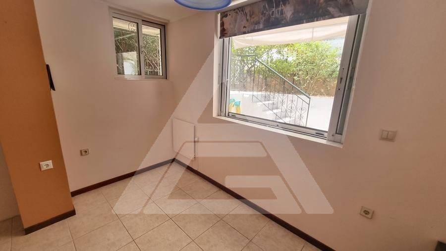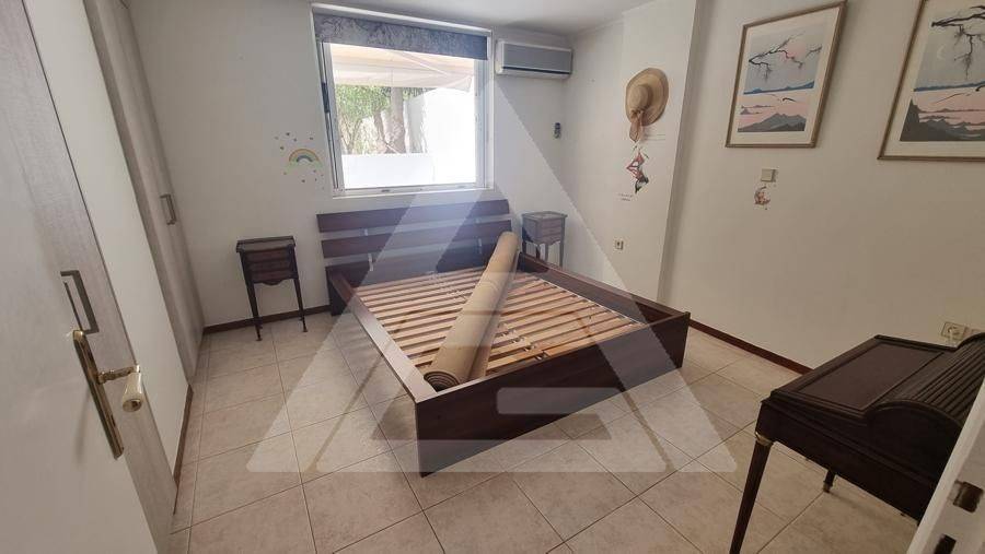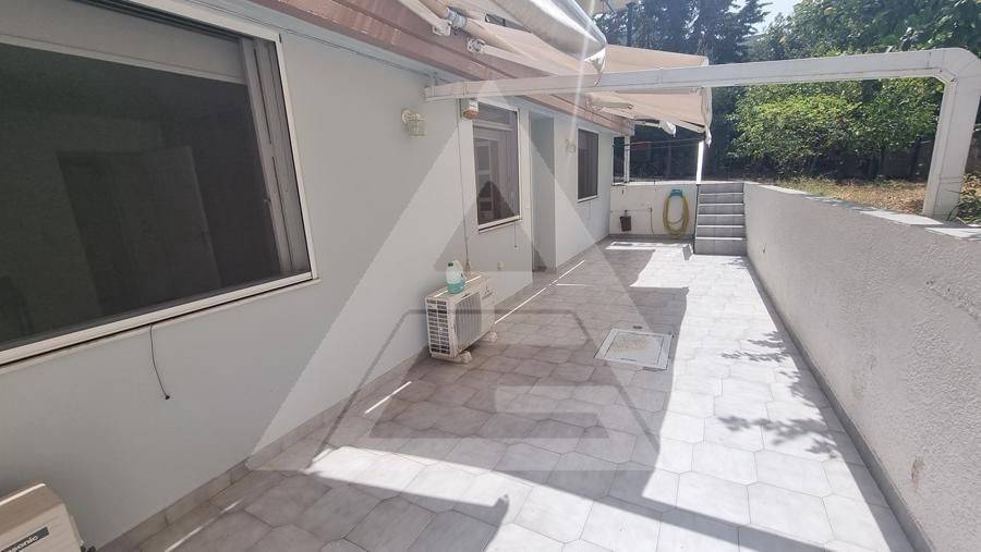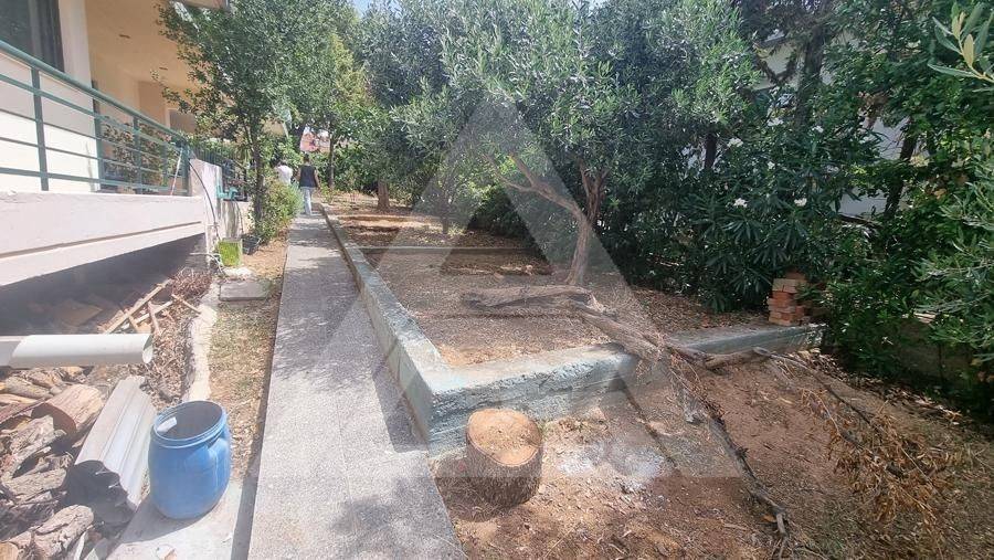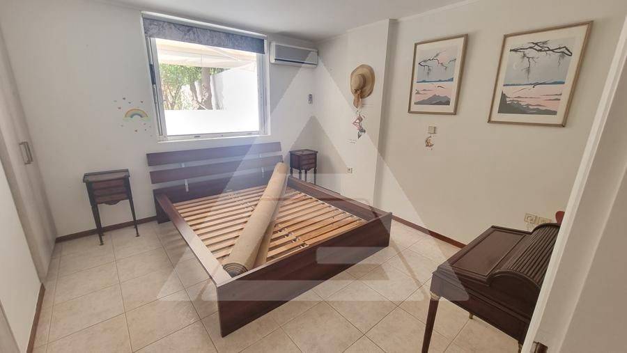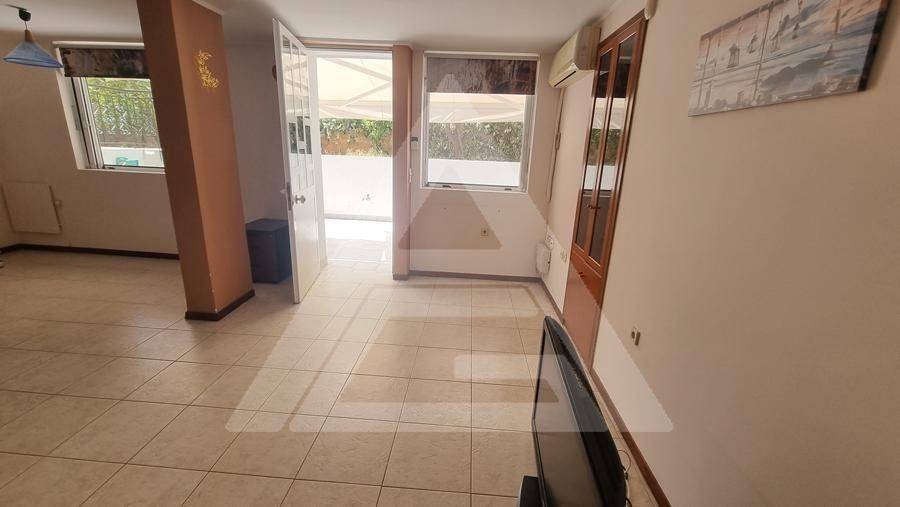 Alimos - Apartment 61sqm electrical appliances furnished, bedroom, levels 1, basement, very good condition, year built 1990, renovation year 2021, energy class F, living room, kitchen, bathroom, heating type: autonomous (air condition), quiet, luminous, frontage, painted, storage space, balconies, large balconies, tents, garden, aluminum frames, double glazed windows, door screen, ceramic tiles floors, without common charges, secure door, pets allowed, residential zone, access from asphalt.
