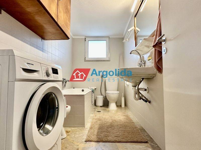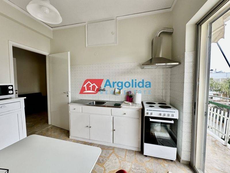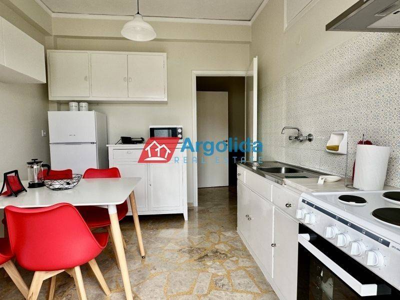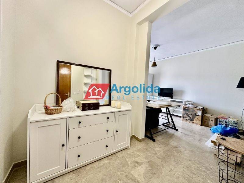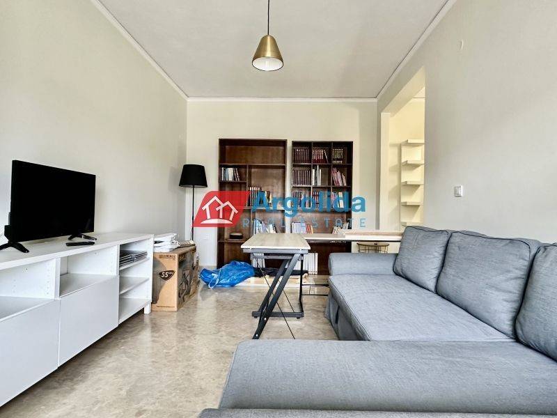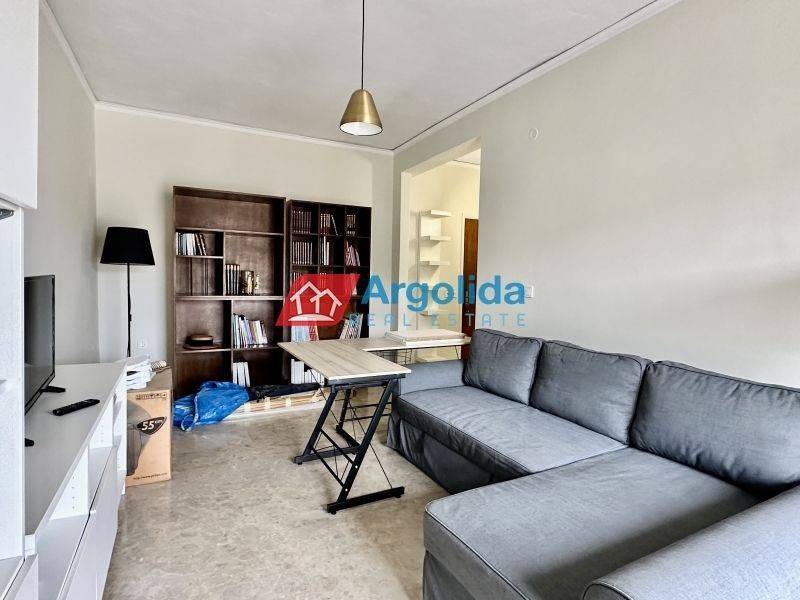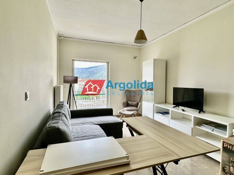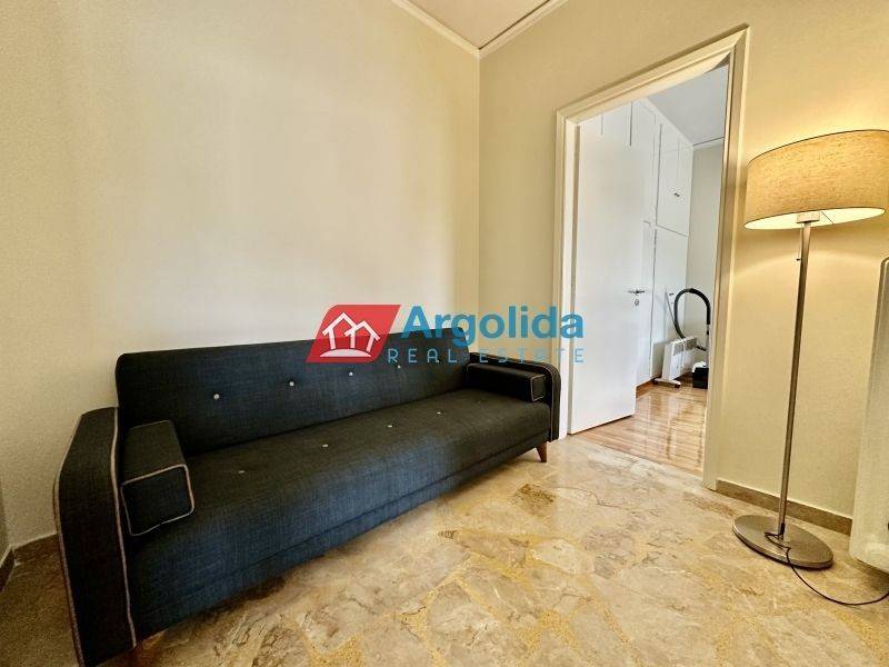Fully furnished 65 sq.m. one-bedroom apartment for rent in Nafplio, in an excellent location with easy access to supermarkets, pharmacies and local shops, ideal for comfortable and high-quality living in the city. The property features one bedroom with wooden flooring, a spacious and bright living room with dining area, a separate fully equipped kitchen with built-in appliances and a dining table for four, a dedicated office space, and one bathroom. It is equipped with central oil heating, air conditioning in all rooms, a solar water heater and awnings, ensuring comfort throughout the year. This apartment is an ideal choice for a family or professionals seeking a modern and functional home in Nafplio, while the beautiful beaches of Karathona and Arvanitia are just a few minutes away by car. Pets are not allowed