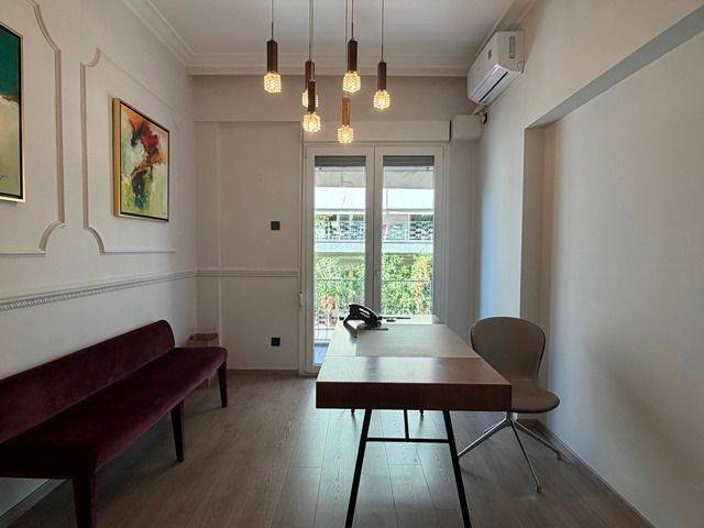 Κολωνάκι – Ηροδότου. Πολυτελώς ανακαινισμένο, εξαιρετικά φωτεινό οροφοδιαμέρισμα 127 τ.μ., 2ου ορόφου, σε καλοδιατηρημένη πολυκατοικία εποχής. Υποδοχή, 5–6 μεγάλοι χώροι εργασίας, γραφείο συνεδριάσεων, κουζίνα, μπάνιο & WC. Αυτόνομη θέρμανση φυσικού αερίου, κλιματισμός. Ιδανικό για επαγγελματική στέγη υψηλών προδιαγραφών (γραφεία, ιατρείο, δικηγορικό, κλπ).