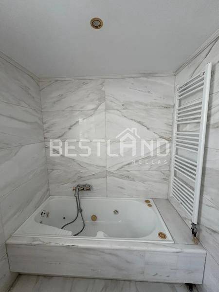Marousi, Orio Vrilission - Apartment 130sqm unfurnished, bedrooms 3, master bedroom, levels 1, 2nd, penthouse, excellent condition, year built 2000, energy class B+, living room, hall, kitchen, 2 bathrooms, heating type: autonomous (natural gas), parking covered, quiet, dual aspect apartment, luminous, unobstructed view view, frontage, storage space 13sqm, solar heater, fireplace, balconies, large balconies, balcony 25sqm, elevator, loft storage, garden, aluminum frames, double glazed windows, ceramic tiles floors, separate kitchen, secure door, alarm, video doorbell, luxurious, jacuzzi, within city plan, residential zone, east-southern orientation, access from asphalt.