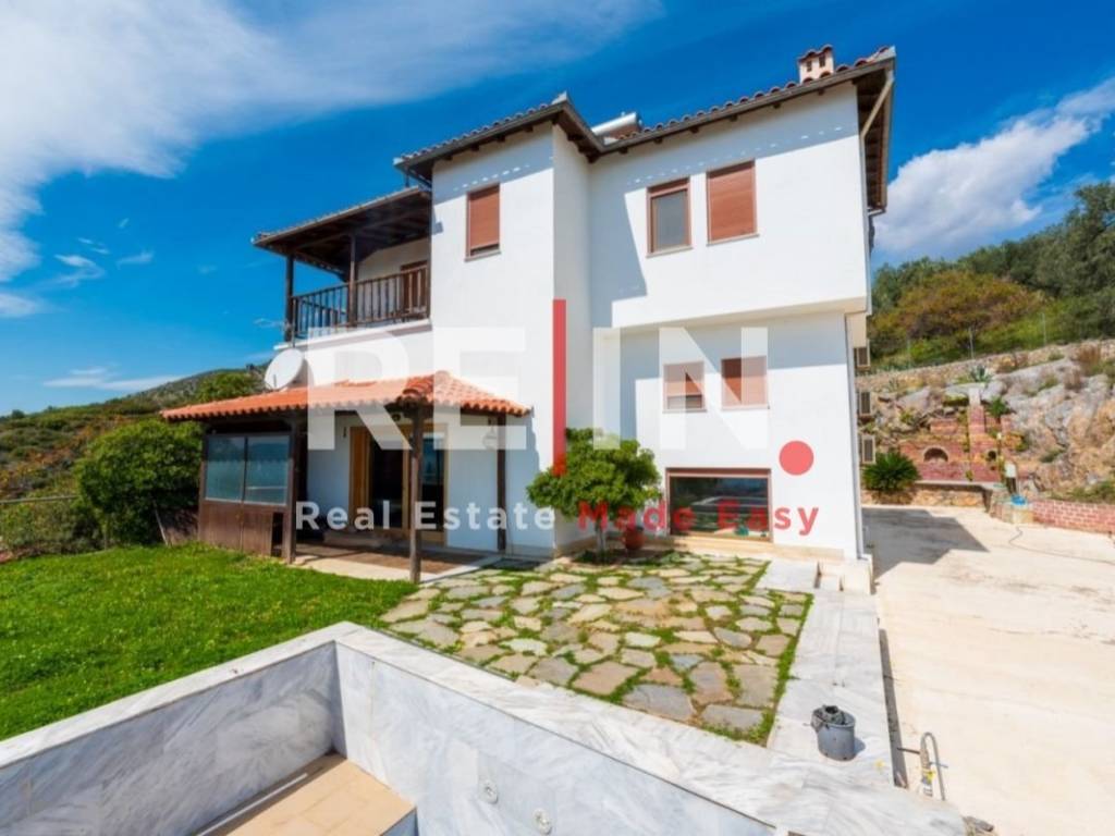 Real Estate Consultant ****** Nikopoulos 693 41 92 168. A maisonette is available for sale in Agria, Volos, with a total area of 160 m² plus additional auxiliary spaces (storage rooms), built on a 4,800 m² plot of land. The property is on two levels and is surrounded by 80 organically grown olive trees, offering a unique combination of residence and natural environment. Access to the property is direct via a paved road. The residence has three bedrooms, two bathrooms, an open-plan living room-kitchen, and a sauna, making it ideal for both primary and vacation use. Heating is provided by radiators, an energy-efficient fireplace, air conditioning, and a solar water heater, fully covering living needs throughout all seasons. This is a property that combines the comfort of modern living with the potential for tourist use, in a green and peaceful environment just a few minutes from Volos and close to the sea. 4 rooms, 1 kitchen(s), floors: Tiles, frames: Wooden, orientation: East-west, features: Cable TV, Internal Staircase, Double Glazing, Screens, Terraces, Pets Allowed, Investment, Luxury, Bright, Boiler, Court, Automatic Watering, Trees, Private Sewer.