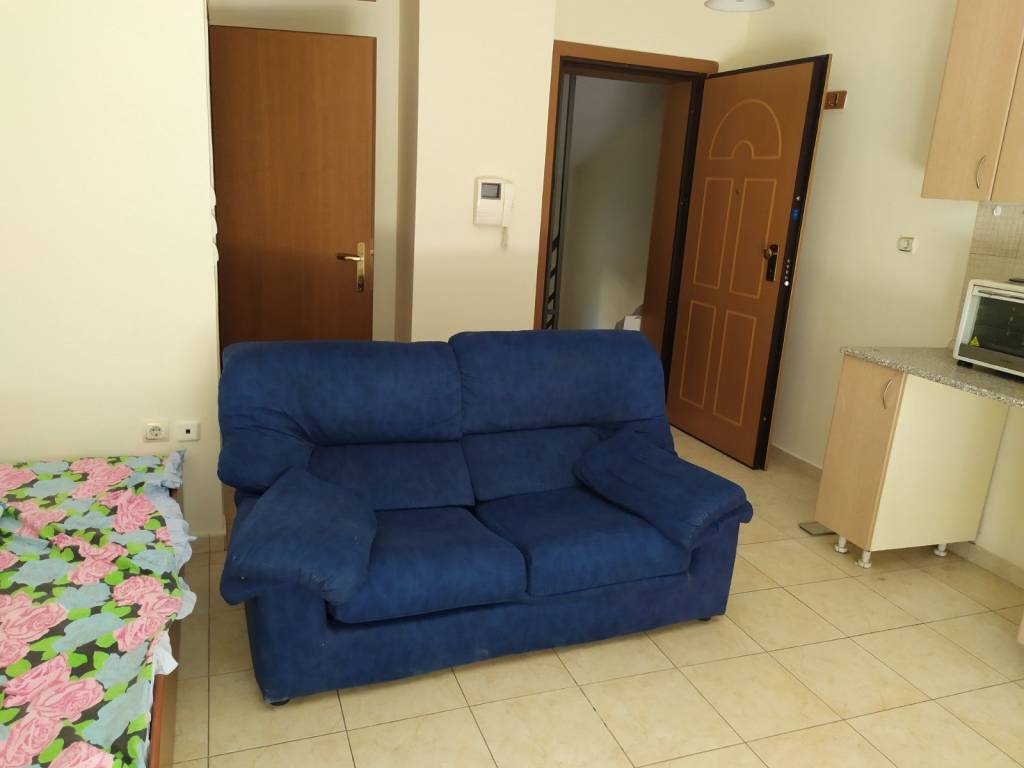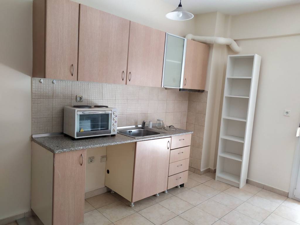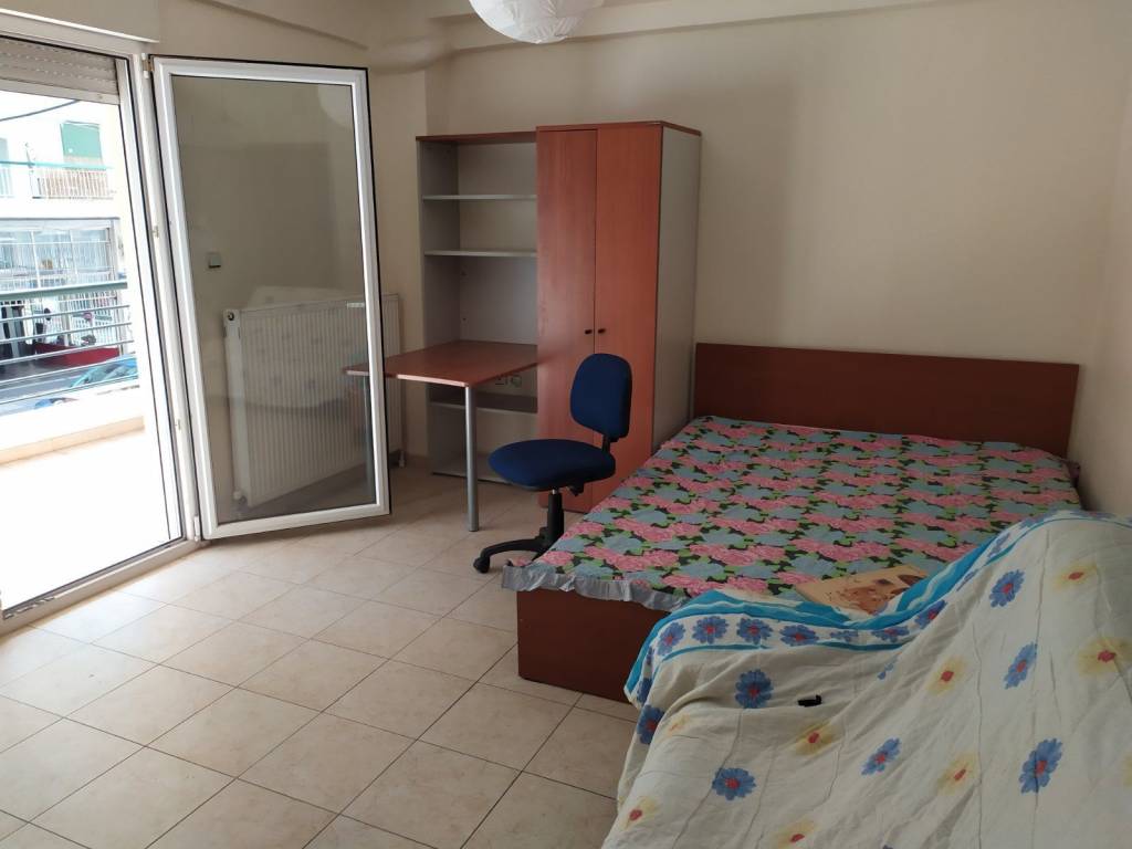 Στούντιο ενός χώρου, με κουζίνα (πάγκο) , και WC με ντουζιέρα, στον 1ο όροφο οικοδομής , με κεντρική θέρμανση φυσικού αερίου και ωρομέτρηση. Το στούντιο είναι ημι-επιπλωμένο, διαθέτει διπλό κρεβάτι, δίφυλλη ντουλάπα, βιβλιοθήκη-γραφείο, διθέσιο καναπέ και μικρό ψυγείο. Είναι νέα κατασκευή με ηχομονωτικά συνθετικά κουφώματα και διπλό υαλοπίνακα. Διαθέτει μεγάλο μπαλκόνι (φωτογραφία από το μπάνιο θα ανέβει σύντομα)