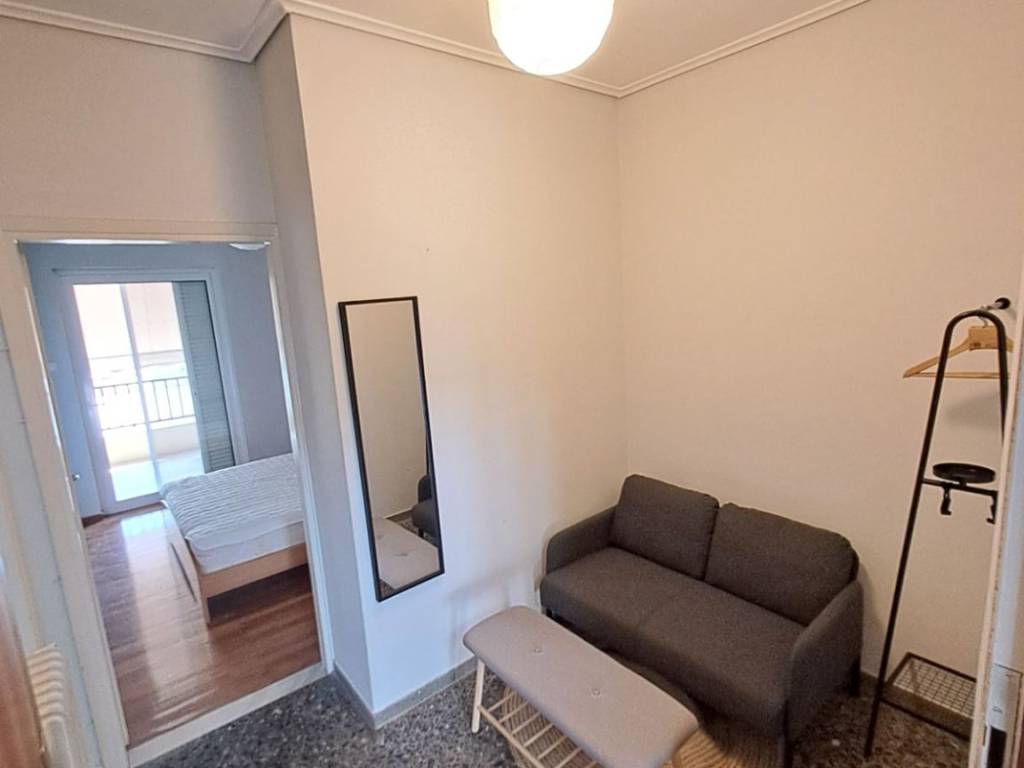 5th floor with open view of the Olympic Stadium and Mount Hymettus, new thermo-insulated windows, solar water heater, 80 cm high refrigerator, extractor fan, double bed with new anatomical mattress. Upon request, a washing machine, cooking stove, and TV can be provided. Ideal for couples. No pets allowed. Provides a specific parking space in the courtyard.