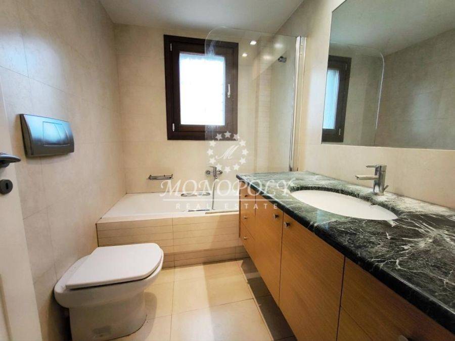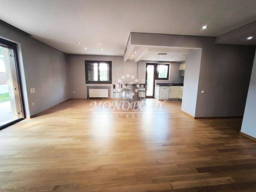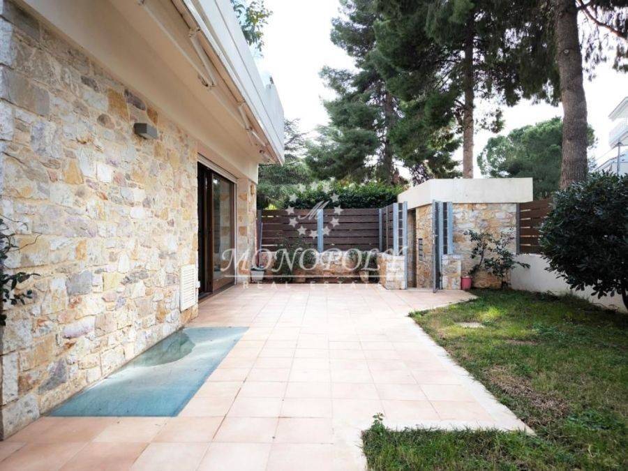 Voula - Kato, Maisonette 175.40 sq m., 2 levels, built in 2005, in excellent condition, with a large garden around and use of a swimming pool, consists of 3 bedrooms, (2 master), 2 bathrooms, 1 WC, storage room and parking in the garage. On the ground floor of 107.40 sq m. we find a large living room with dining area, with an open kitchen with a walk-in pantry, large balcony doors and windows for plenty of light and direct access to the large garden in front and around. The kitchen has granite countertops, has electrical appliances, a window and a balcony door with access to the side of the garden, where there is a pergola and paving. All floors are wooden and there is central air conditioning in the living room and kitchen. From the hall we pass to 1 WC with shower, and to the 2 bedrooms at the back, with several closets, air conditioners and direct access to the garden. One is a master with a large full bathroom, with a window overlooking the back garden, and a balcony door for direct access to the back of the garden. In the basement of 71 sq m. we go down an internal wooden staircase, illuminated, and we find an open space for use as a playroom or second living room, with a fireplace and 1 master bedroom with bathroom, with shower cabin. There are tiles on the tiles, the living room is illuminated with 5 large windows and the bedroom with a large window. The light comes down from the cour anglaise to the garden. Inside the space there is also an internal, large storage room of 9.5 sq m, and a security door that leads to the garage and the 16 sq m parking space. The garden is single, wide, extends around the perimeter of the house, has a lawn with automatic watering and a pergola with paving outside the kitchen. There are electric awnings and shutters. aluminum frames, tilting, double glazing and 2 security doors. Use is made of the communal swimming pool 40sqm. with deck, located at the entrance of the apartment building consisting of only 4 properties. It is located in a very good and quiet location, easily accessible from Vouliagmenis Avenue and Poseidonos, close to parks, a large super market, a local market with many basic shops, a hospital and 1,300m. from the beach, by road. *Property location on the map can be relevant and not accurate. *ID or Passport and TAX number are required for visiting the property, from each person that will be present.