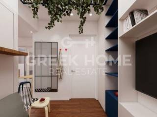 Agios Dimitrios (Attica - Southern Suburbs) - Apartment 24sqm fully furnished, bedroom, ground floor, renovated, year built 1974, energy class B+, living room, kitchen, bathroom, heating type: autonomous, air condition, luminous, frontage, painted, balconies, aluminum frames, double glazed windows, wood floors, secure door, pets allowed.