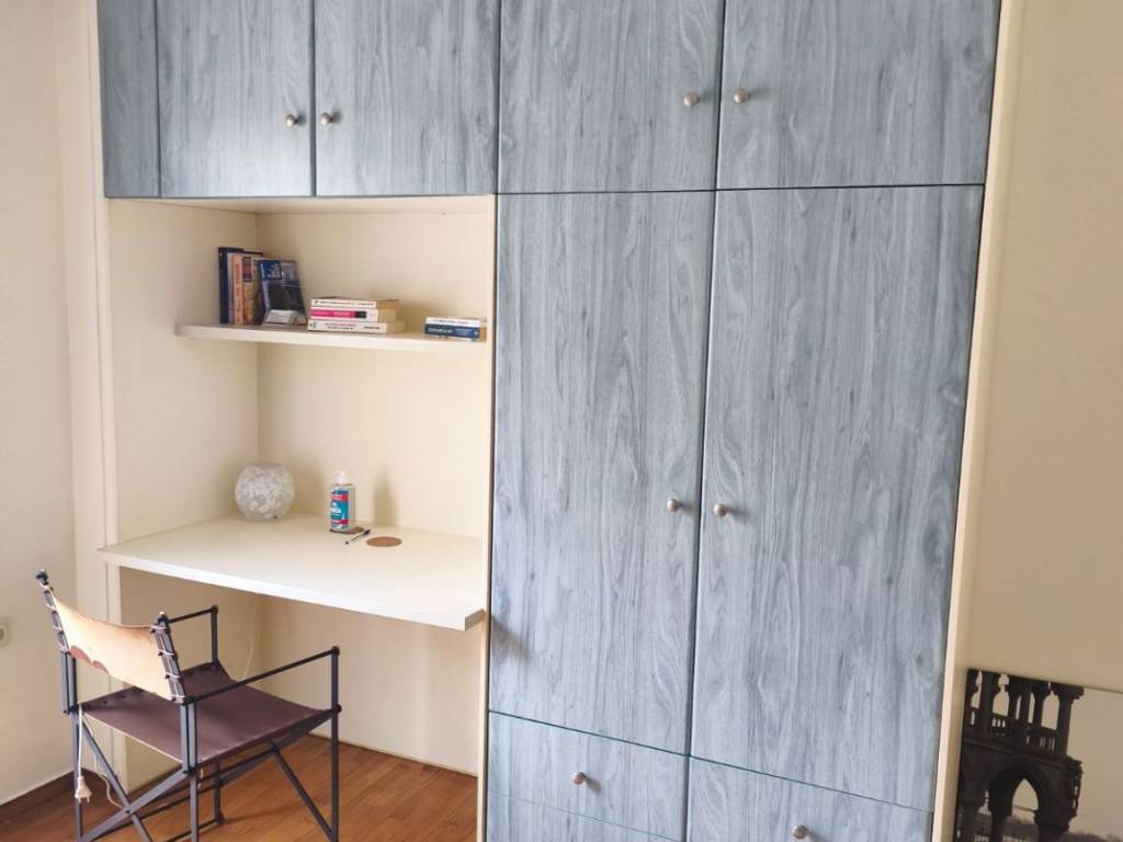 Comfortable bright apartment, with one large bedroom, living room and an independent renovated kitchen. It features built-in wardrobes, office space, aluminum window frames, insect screens, a balcony, and has been freshly painted. It offers autonomous heating in each room with digital meters in every space, solar water heater. It can also be rented as an office.