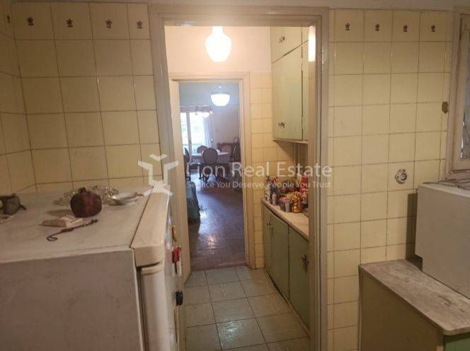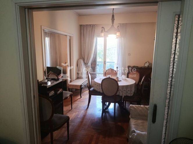 The property features 2 comfortable bedrooms, a large 3-section living room with sliding doors allowing flexible layout options, a functional kitchen, 1 bathroom, 2 WCs, and balconies totaling 10 sq.m. Partially renovated in 2015, it combines classic elegance with marble and wooden flooring, wooden window frames, and practical built-in wardrobes.  Additional amenities include central heating (oil), A/C, a 5 sq.m. storage room, elevator, and electrical appliances. Situated just 700 m from the metro station, it ensures easy access to public transportation and city services.