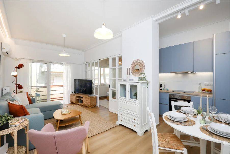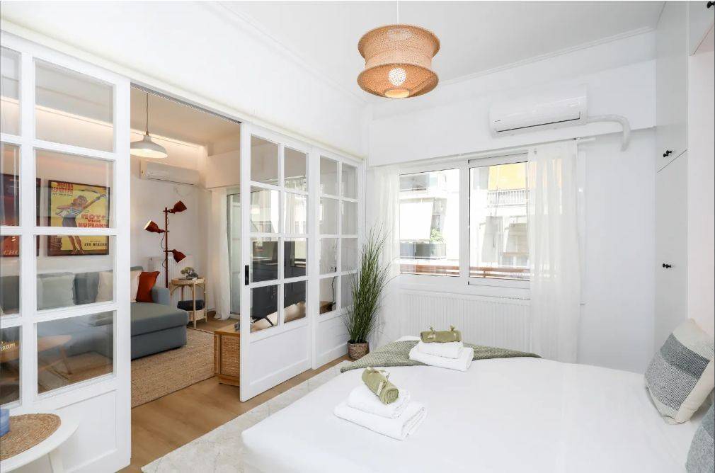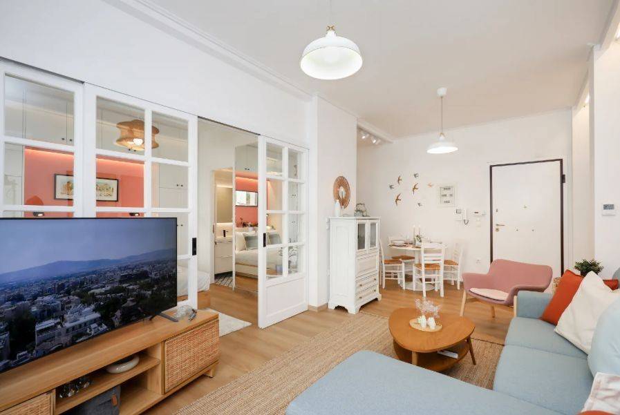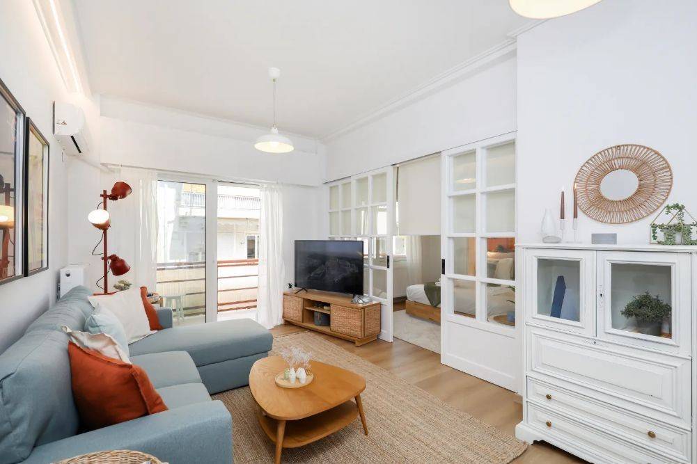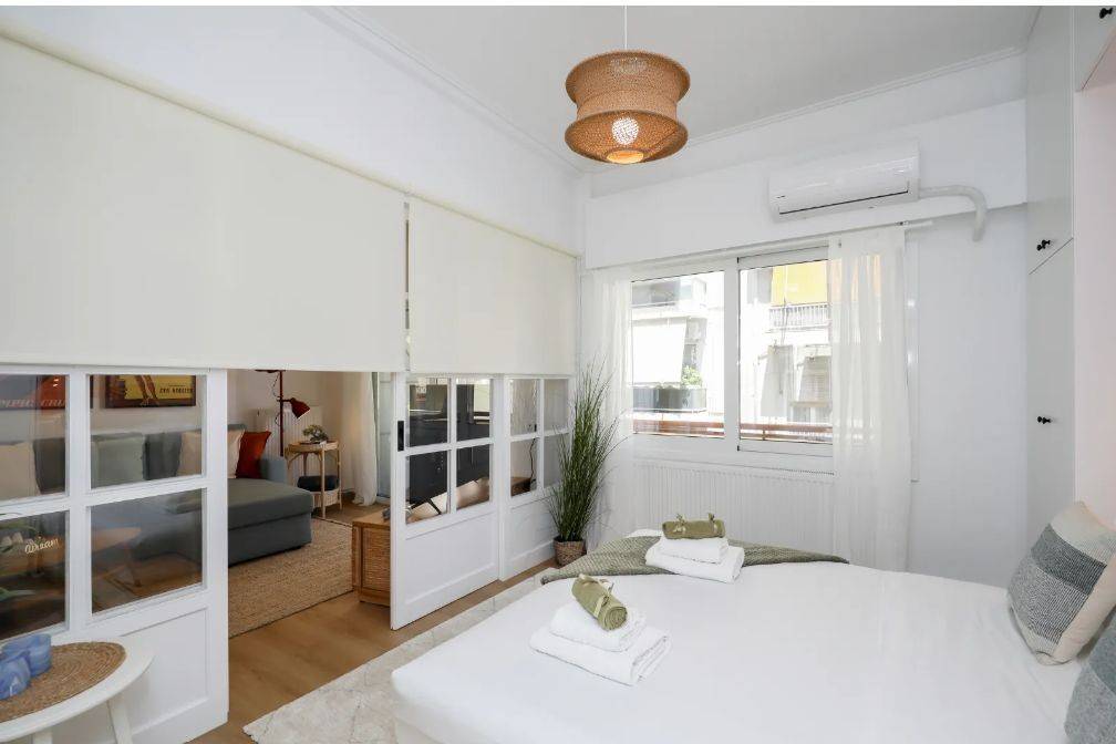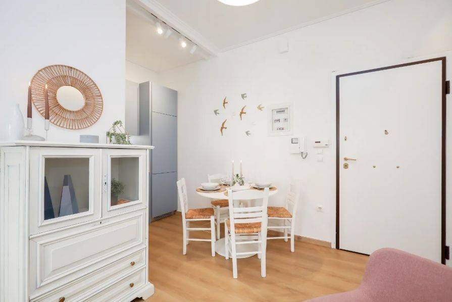 Pangrati – Apartment for Rent Second-floor apartment in excellent condition, fully furnished and equipped, with a total area of 45 sq.m. It comprises 1 bedroom, 1 bathroom, a fully equipped kitchen with electrical appliances, and a living room with sofa and Smart TV, featuring modern décor. Additional features include balcony, aluminum window frames, security door, dining area, autonomous natural gas heating, air conditioning, and elevator. Located in a quiet area of Pangrati, close to shops, cafés, parks, and public transportation. Immediately available Property Code: 2112 Price: €950