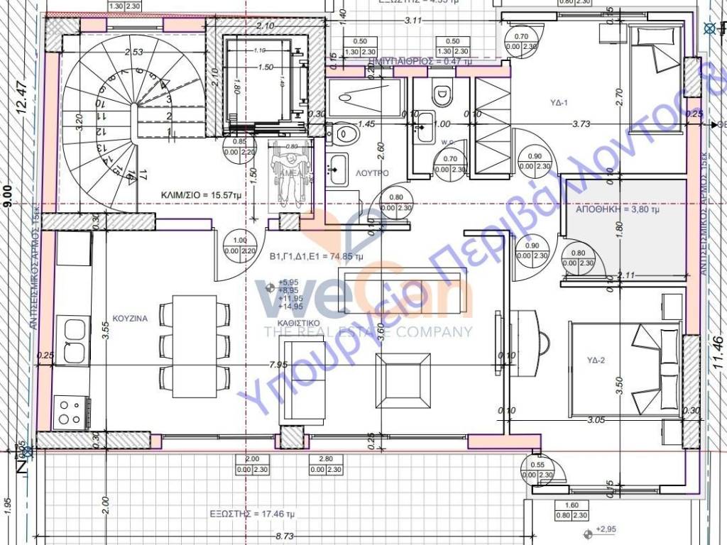 Property Code: 11-2155250. Apartment For sale, floor: 4th, in Ilioupoli. The Apartment is 75 sq.m.. It consists of: 2 bedrooms (1 Master), 1 bathroom, 1 wc, 1 kitchen, 1 living room and it also has 1 parking (1 Closed). The property was built in 2026. Its heating is Personal with Natural gas, Solar water system, Sound insulation, Thermal insulation, Radiator, Thermal facade are also available, it has Alluminum frames with Triple glazed - Energy Efficient windows, the energy certificate is: A and its floors are Tiles, Wooden. The property's status is: New development, it is close to Metro, Transportation, Park, School, Square, City Center, 700 Meters from metro, it has Openness, Good, City views view and it has SouthWest orientation. The Apartment is Whole floor, Painted, Bright, Airy, Sunny, Airy, Ramp / Wheelchair access, Luxury, Modern and it also has the following unique features and advantages: Elevator, Storage, Security door, CCTV, Security alarm, Night stream, Pets allowed, Quiet neighborhood, Porch, Car charger. Price: €330.000. weCan real estate, contact phone: 2110016800, 6934880004, email: info@wecan-realestate.gr, website: www.wecan-realestate.gr