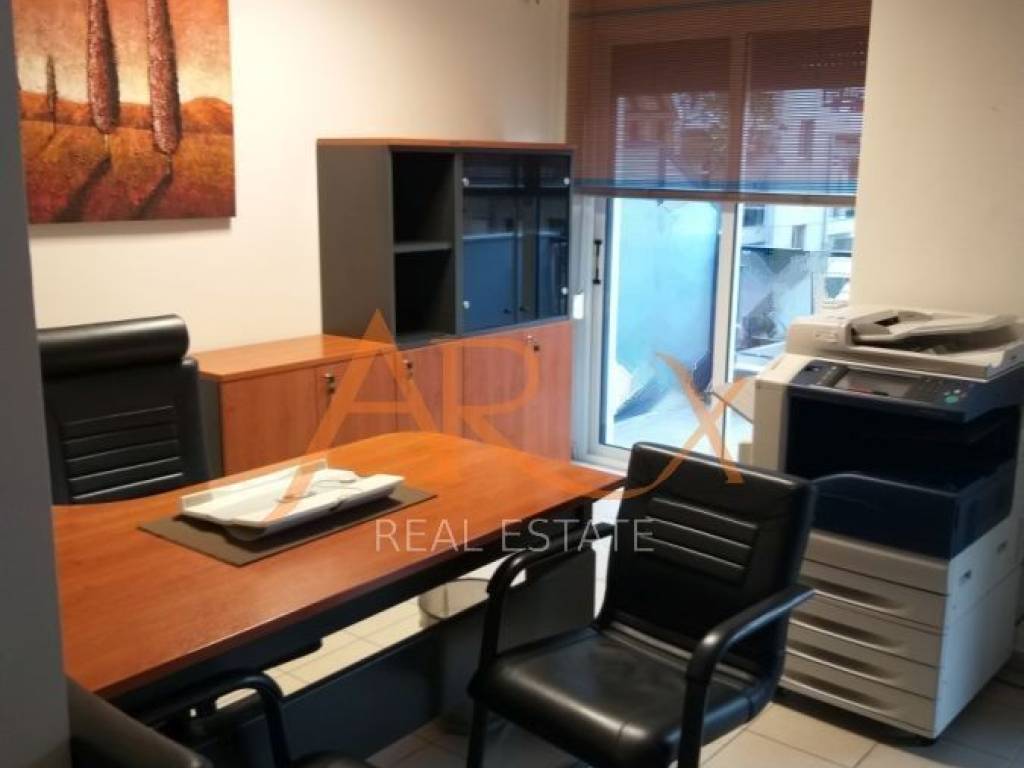 ΚΑΛΑΜΑΡΙΑ Κέντρο. Γραφείο διαμπερές πλήρως επιπλωμένο, με δύο κύριους χώρους ανεξάρτητους, χωριστή μεγάλη κουζίνα εξοπλισμένη, μπάνιο με ντουζιέρα, wc επισκεπτών Θέρμανση με ατομικό λέβητα φυσικού αερίου Δύο κλιματιστικά Ιδανικό για οποιαδήποτε επαγγελματική δραστηριότητα. Σε περιοχή που καλύπτει όλες τις ανάγκες τις καθημερινότητας (αγορά, τράπεζες, super market, πρόσβαση σε αστικές συγκοινωνίες). Η ακριβής διεύθυνση που αναφέρεται στην αγγελία είναι ενδεικτική της θέσης του ακινήτου και όχι η πραγματική.