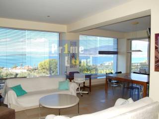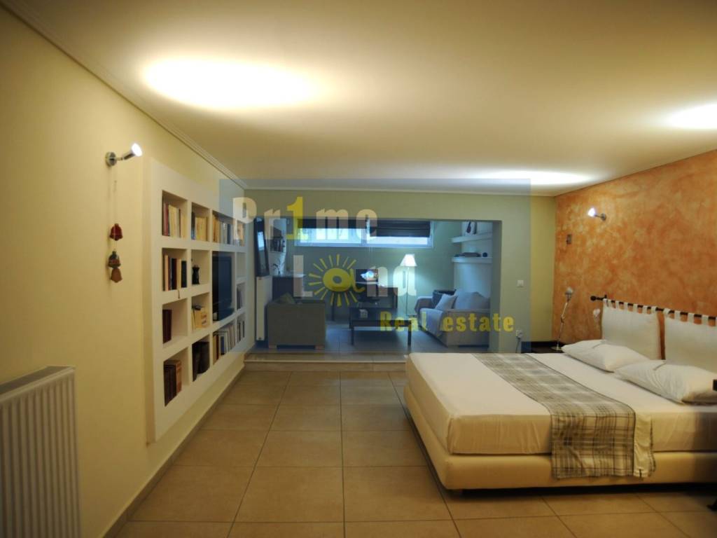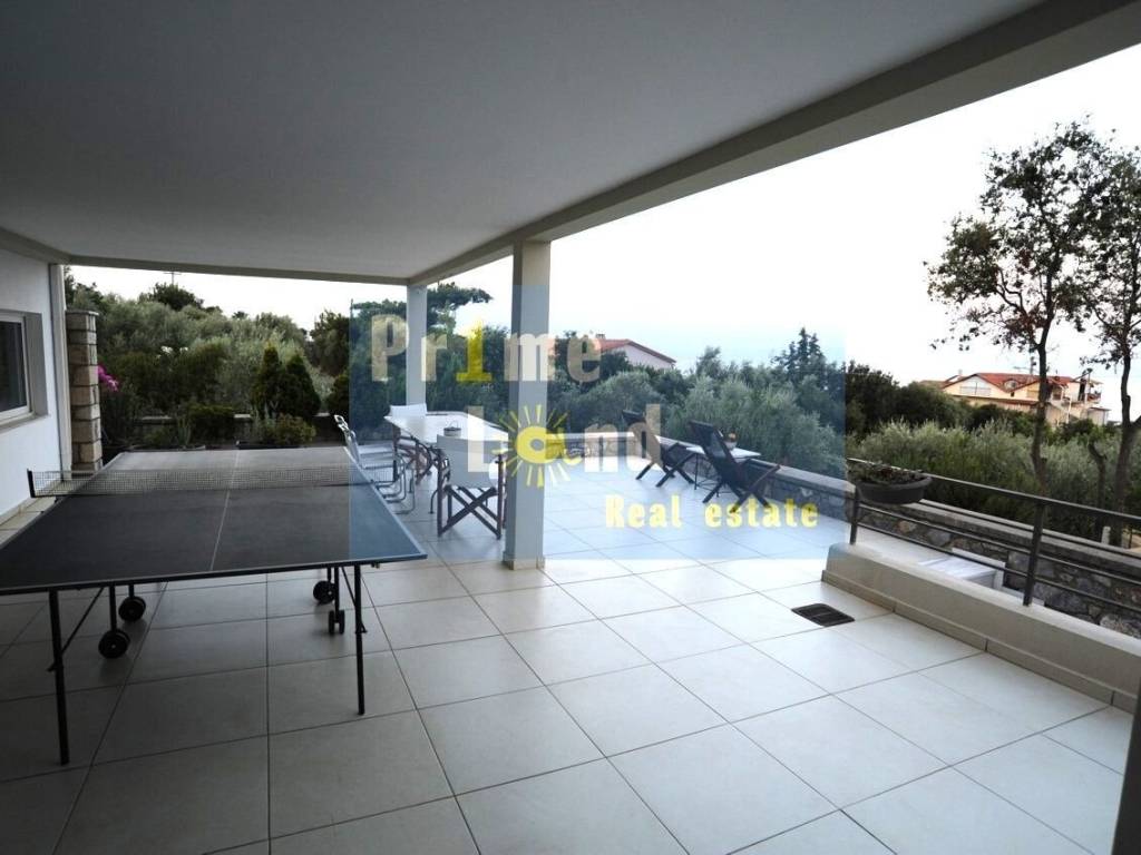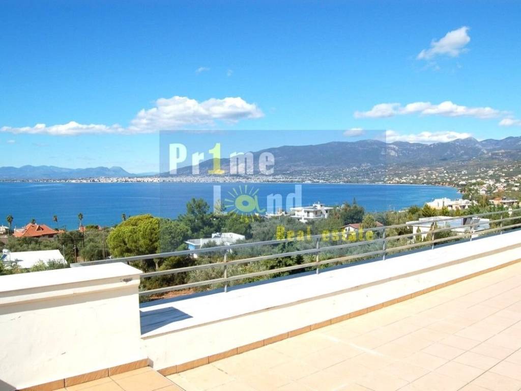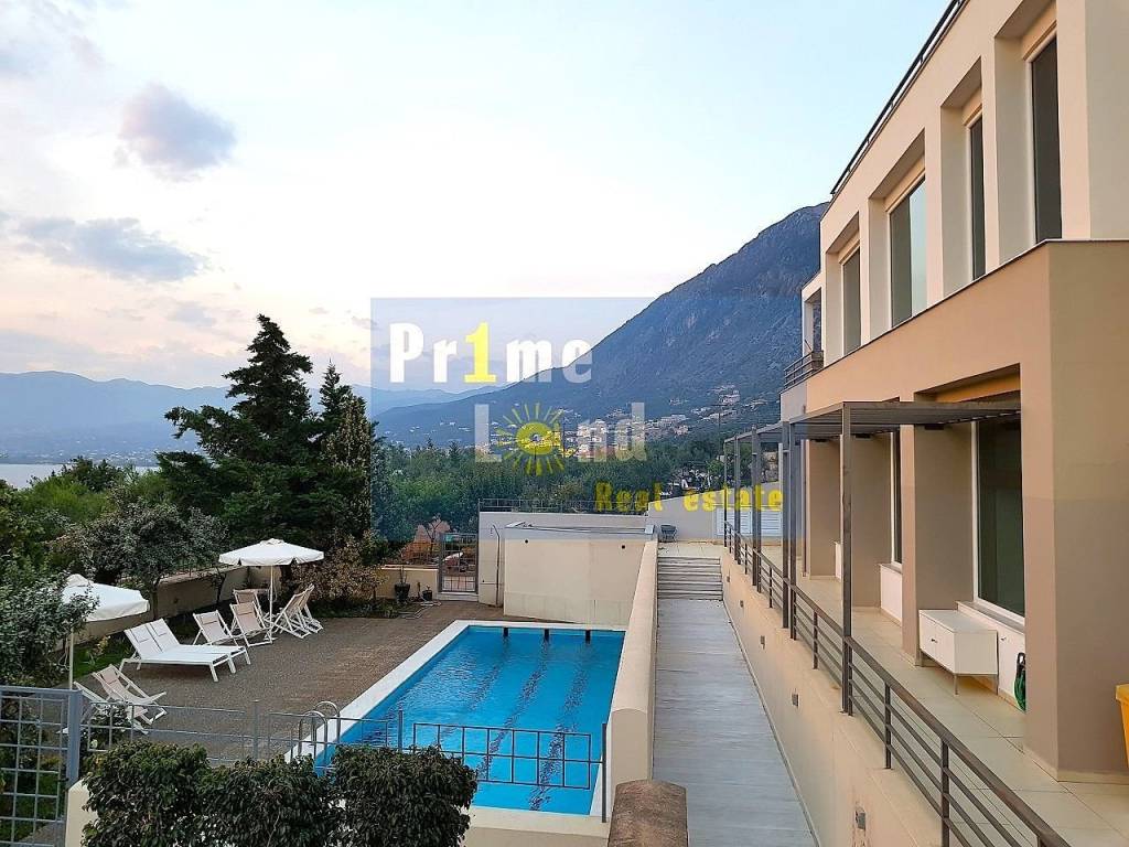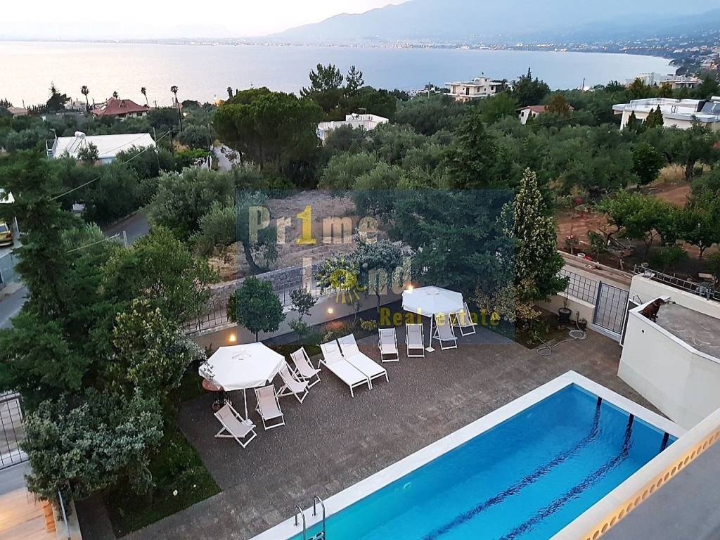 Luxurious three-level villa with unlimited views of the Messinian Gulf for sale in Mikri Mantineia of Kalamata. Building area: 580 sq. m. Plot area: 1,600 sq. m. With eight spacious bedrooms and six bathrooms totally. With landscaped surroundings and a 50 sq.m. swimming pool in the garden. The property is located 300 meters distance to organized beaches and 6 kilometers distance to the center of Kalamata.