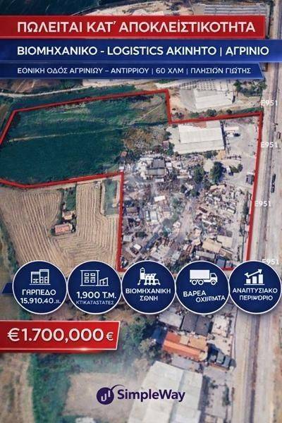 ΑΓΡΙΝΙΟ - Οικόπεδο 15910τμ, βιομηχανικό, οικιστική ζώνη, εκτός σχεδίου. Για την καλύτερη εξυπηρέτηση σας, παρακαλώ προτιμάτε να αποστέλλετε μήνυμα ενδιαφέροντος μέσω της σελίδας αγγελιών και θα επικοινωνήσουμε σύντομα μαζί σας. Εναλλακτικά μπορείτε να μας καλείτε καθημερινά Δευτέρα - Παρασκευή 10:00-16:30 στα τηλέφωνα 2100102835 & 6934867725. ΠΩΛΕΙΤΑΙ ΚΑΤ' ΑΠΟΚΛΕΙΣΤΙΚΟΤΗΤΑ ΑΠΟ ΤΟ ΓΡΑΦΕΊΟ ΜΑΣ, ΣΤΡΑΤΗΓΙΚΟ ΒΙΟΜΗΧΑΝΙΚΟ – LOGISTICS ΑΚΙΝΗΤΟ | ΑΓΡΙΝΙΟ Εθνική Οδός Αγρινίου – Αντιρρίου | 6ο χλμ | Πλησίον ΓΙΩΤΗΣ Διατίθεται προς πώληση ενιαίο βιομηχανικό / logistics ακίνητο υψηλής στρατηγικής αξίας, σε καθιερωμένο βιομηχανικό κόμβο της Δυτικής Ελλάδας. Βασικά χαρακτηριστικά: Γήπεδο 15.910,40 τ.μ. Υφιστάμενες κτιριακές εγκαταστάσεις ~1.900 τ.μ. Ψηλοτάβανοι στεγασμένοι χώροι – σήμερα λειτουργεί συνεργείο φορτηγών Γεφυροπλάστιγγα εντός του ακινήτου Βιομηχανική & εμπορική ζώνη Άμεση πρόσβαση βαρέων οχημάτων – χωρίς αστικό ιστό Αναπτυξιακό περιθώριο (μη εξαντλημένη δόμηση) Ιδανικό για: Logistics & 3PL Αποθήκευση & διανομή Fleet / heavy-duty operations Βιομηχανική ή μεταποιητική χρήση Τιμή πώλησης: 1.700.000 € Διαθέσιμος πλήρης τεχνικός φάκελος (τοπογραφικό, κατόψεις, στοιχεία) κατόπιν επικοινωνίας. Απευθύνεται σε σοβαρούς και στρατηγικούς επενδυτές. ΜΕΣΙΤΙΚΟ ΓΡΑΦΕΊΟ SIMPLE WAY Λ.ΚΑΡΕΑ 64 ΤΚ:16233 ΤΗΛ:2100102835 / 6934867725 10:00-16:30 Εγγραφείτε στο κανάλι μας στο YouTube για να μαθαίνετε πρώτοι τις νέες μας αγγελίες . https://www.youtube.com/channel/UCY93CoY5bQNcrY3589xgnjg Τιμή €1.700.000 (κωδ. 1462) 2100102835, 6975589741 SIMPLEWAY REAL ESTATE