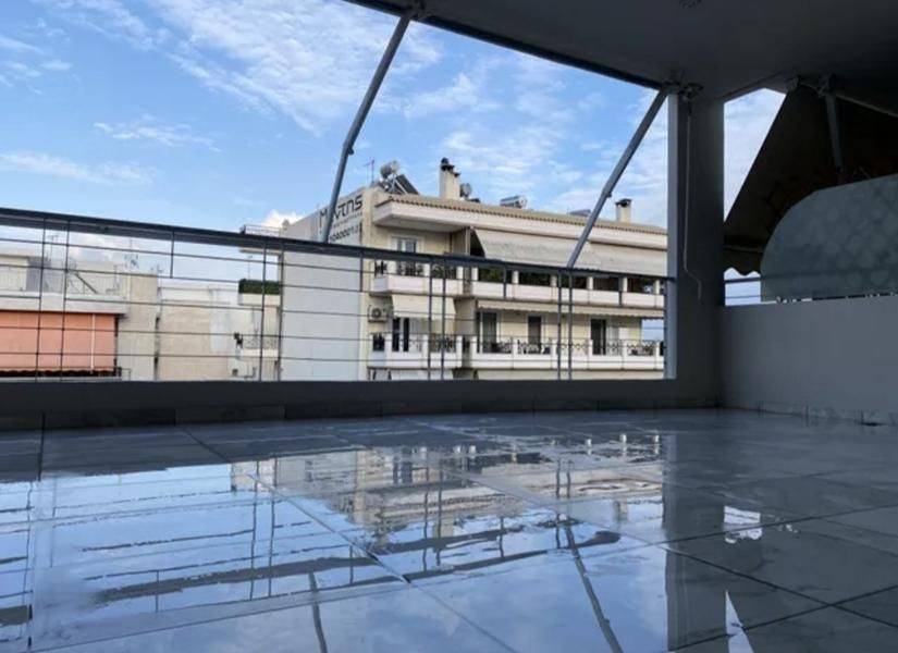 Piraeus, Neo Faliro - Apartment 100sqm bedrooms 2, levels 1, 5th, renovated, year built 2009, renovation year 2024, energy class A+, living room, hall, kitchen, bathroom, heating type: autonomous (natural gas), air condition, parking open space, quiet, dual aspect apartment, luminous, panoramic view, frontage, painted, storage space, solar heater, fireplace, balconies, large balconies, loft storage, aluminum frames, double glazed windows, door screen, ceramic tiles floors, secure door, video doorbell, residential zone.