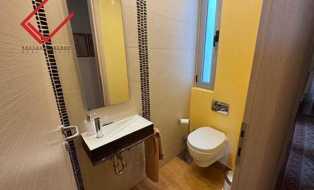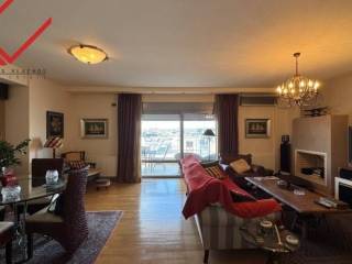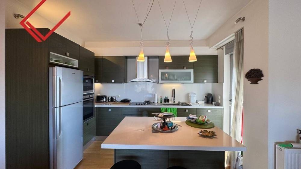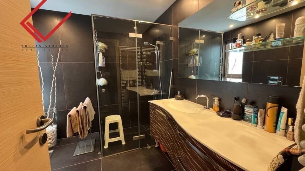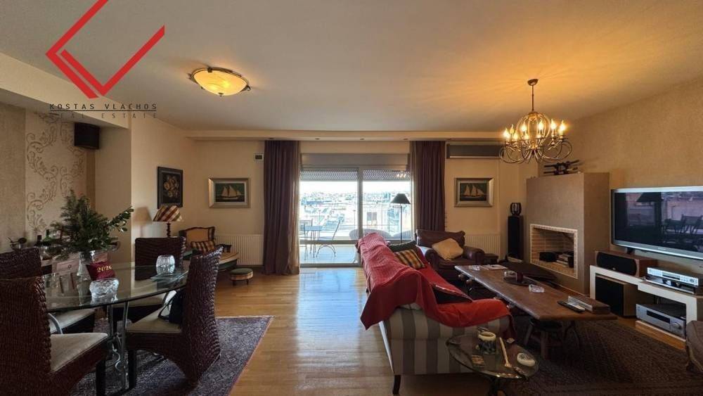 Argyroupoli, Center: FOR SALE luxurious, fully furnished and equipped penthouse apartment on the 4th floor, total area 127 sq.m., with exclusive use of a 50 sq.m. terrace. and unobstructed sea view. The property is located in an extremely central location, just 100 m from the market and 600 m from the Alimos metro. Built in 2011, it consists of 3 bedrooms, a bathroom, a WC and a spacious living-kitchen with dining area, which communicates directly with the large front balcony overlooking the sea. It is available fully furnished and equipped, including two parking spaces (one external covered and one in an internal garage), as well as two large underground warehouses of approximately 30 sq.m. each one. It has autonomous natural gas heating, air conditioners in all areas, solar water heater, electrical appliances, aluminum frames with double glazing, security door, elevator, communal garden, tiled and wooden floors, awnings, screens and alarm system. Price €640,000 Property Code: #7602