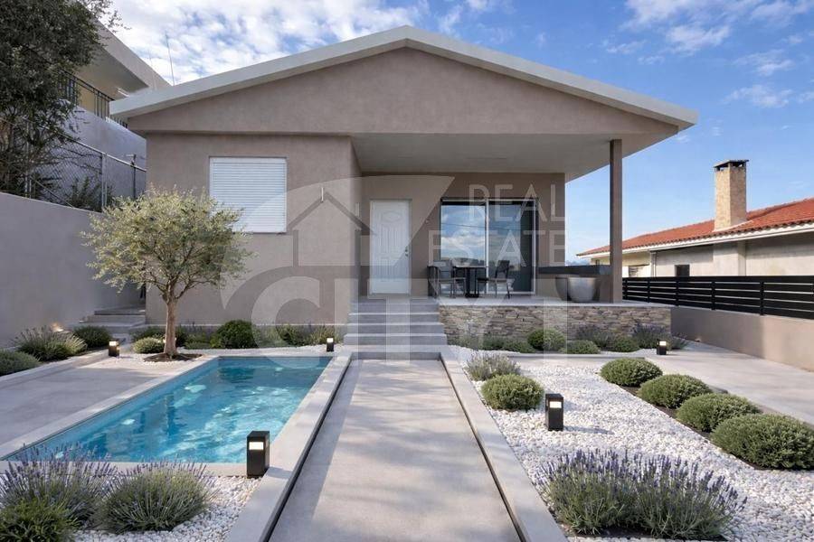 Oropos - Detached House 85sqm plot 300sqm, bedrooms 3, excellent condition, year built 1989, renovation year 2026, energy class A+, living room, kitchen, bathroom, heating type: autonomous (oil), air condition, parking open space, quiet, dual aspect apartment, luminous, sea view, frontage, painted, storage space, balconies, large balconies, garden, aluminum frames, double glazed windows, ceramic tiles floors, secure door, swimming pool, residential zone.