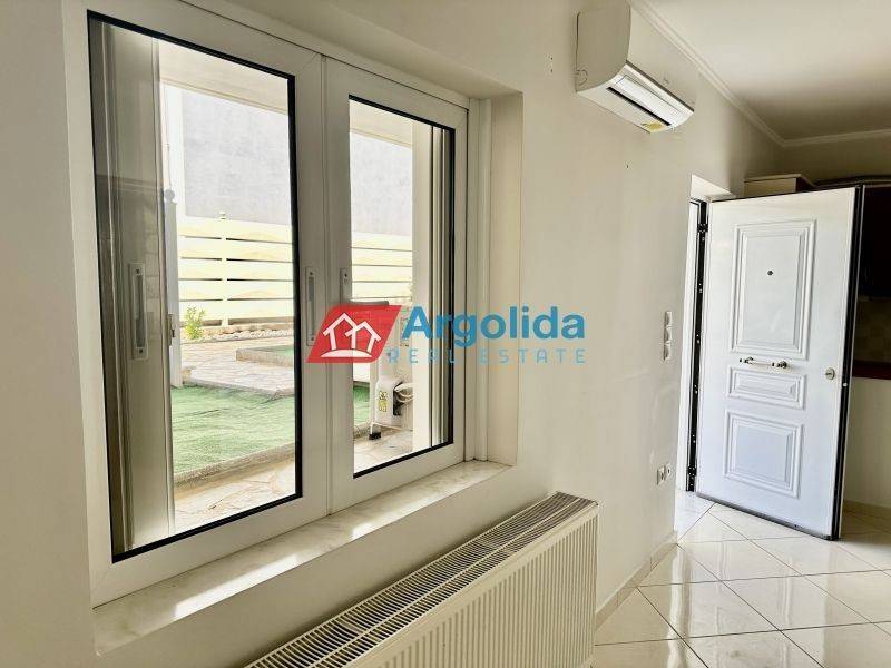 In the developing area of Kourti in Nafplio, a ground floor (semi-basement) apartment of 51 sq.m. is available for sale, in excellent condition. It features a private entrance and a private courtyard, making it ideal for permanent residence, holiday use, or investment. The apartment includes one bedroom with a built-in wardrobe, an open-plan kitchen and living area, one bathroom, and is equipped with an A/C unit for cooling and heating, autonomous oil heating, and aluminum window frames with double glazing and insect screens, ensuring thermal insulation and year-round comfort. Additionally, there is an uncovered internal area that can be used as a storage space, adding practicality to the property. Located in a quiet residential neighborhood, the apartment is just a short distance from a supermarket and only 150 meters from the Nafplio – Nea Kios coastal road, providing easy access to the city center, the sea, and various points of interest. An excellent opportunity for those seeking an affordable and high-quality property in one of Nafplio’s most desirable areas.